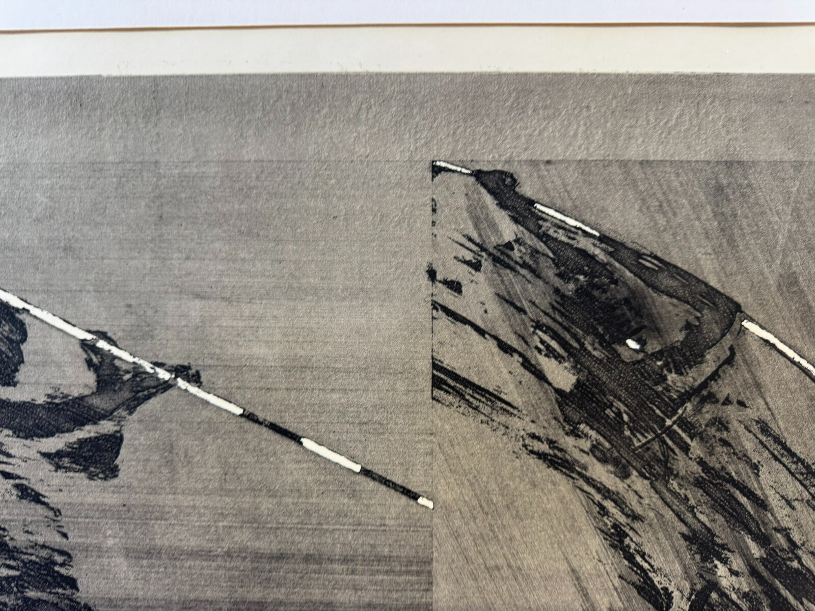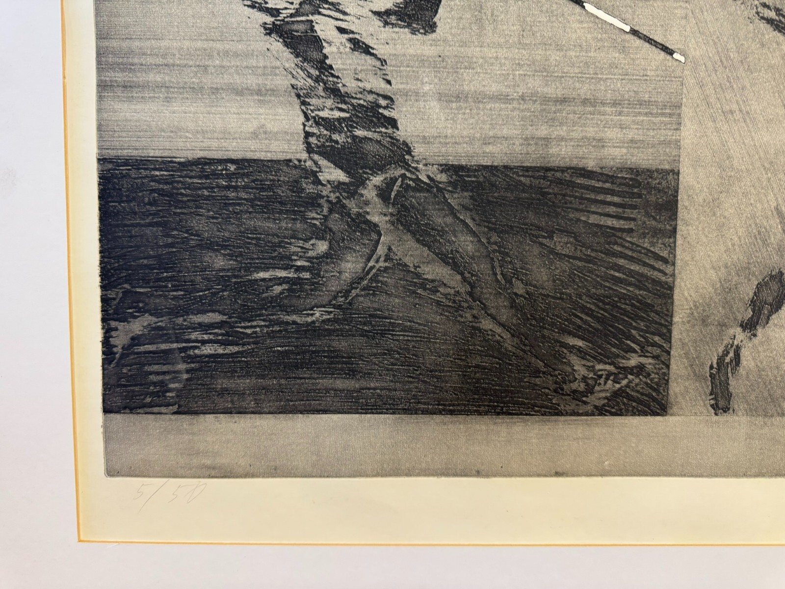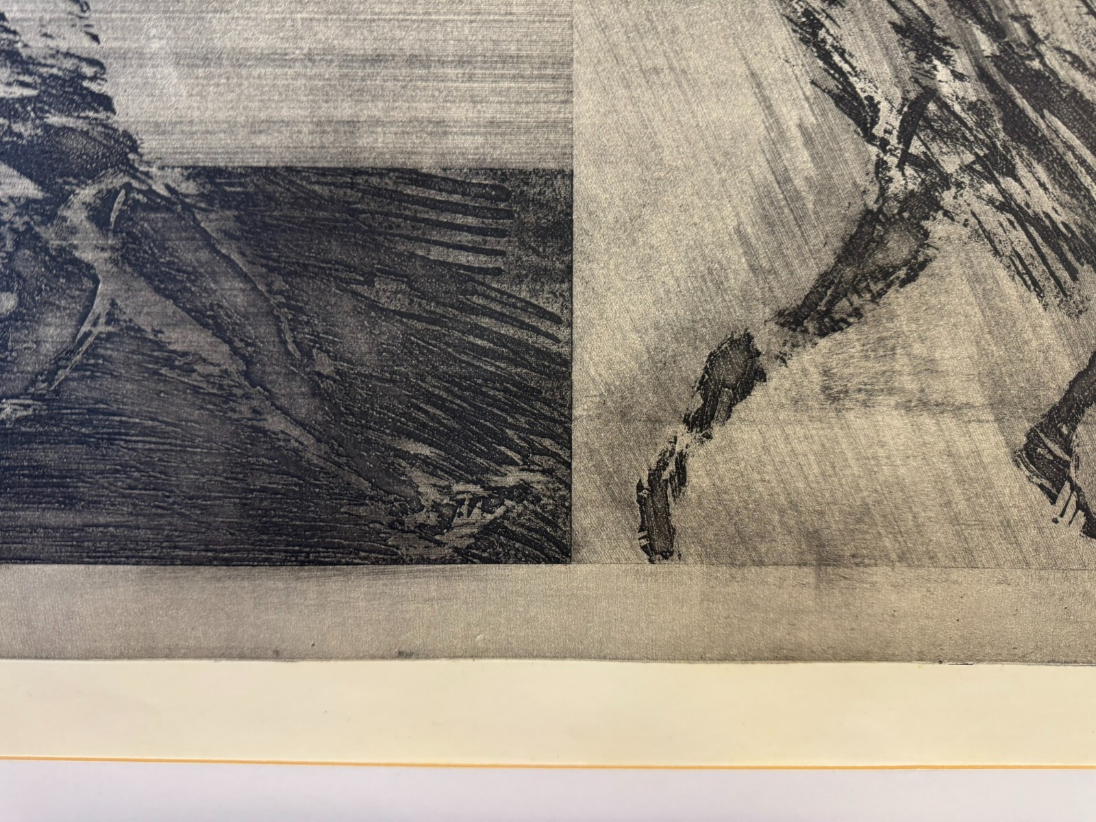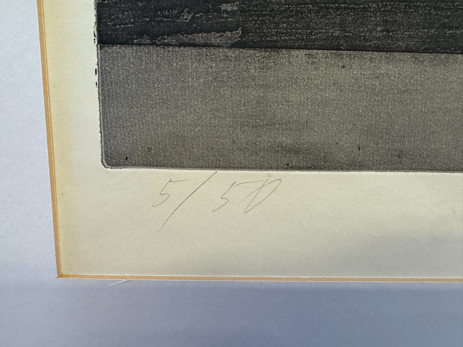 Farblithographie auf Papier mit Bleistift signiert, datiert und nummeriert, ohne Glas, am Passepartout und am Blatt  Abrieb, Flecken und kleinere Druckstellen, der Rahmen minimal berieben, Abmessungen sichtbar: 63x45cm, gesamt: 77x61cm.