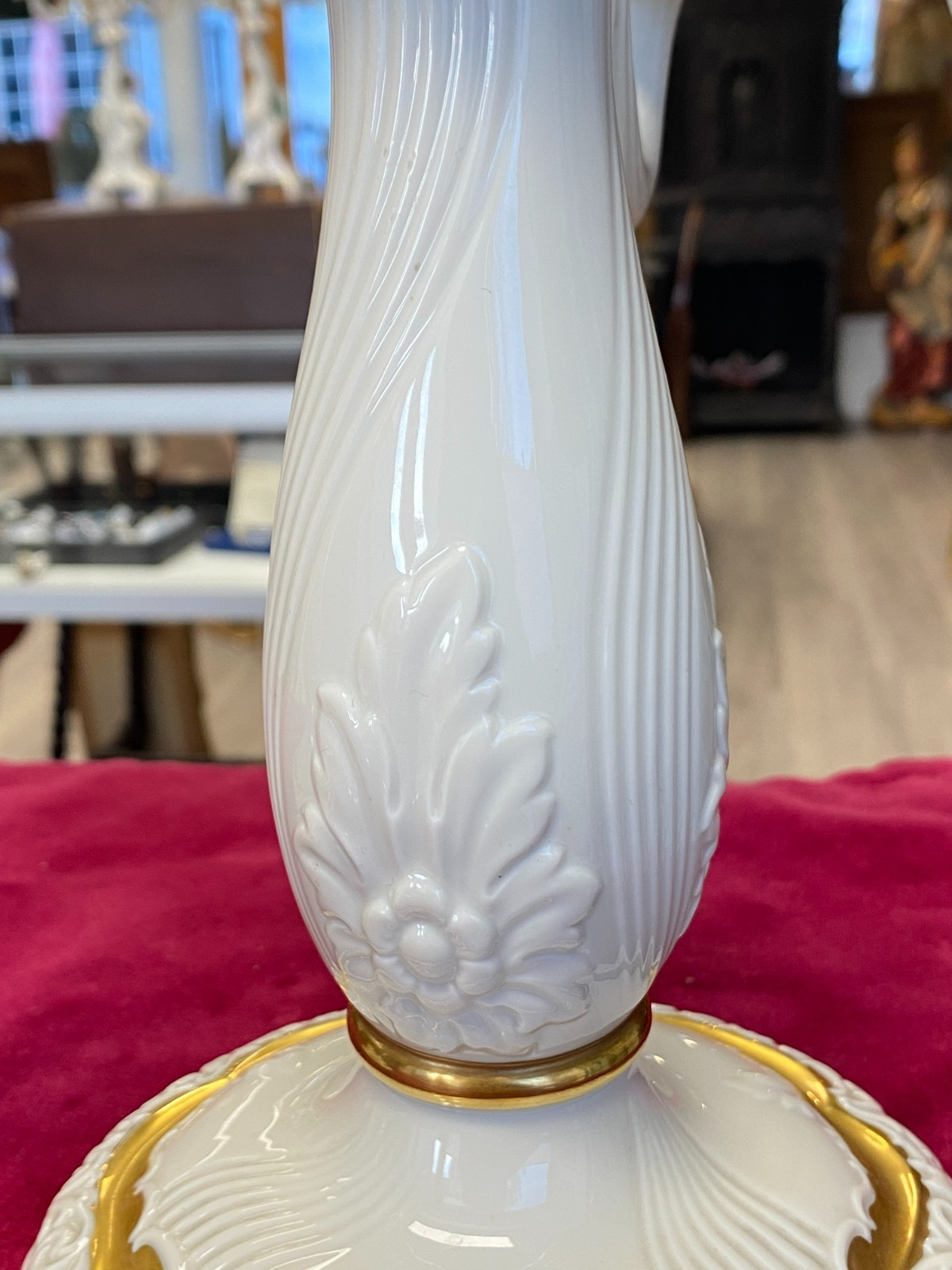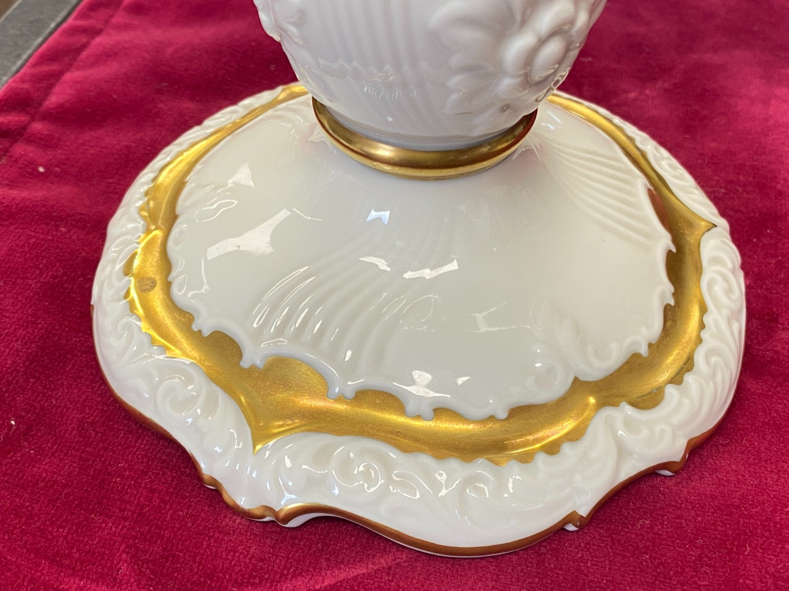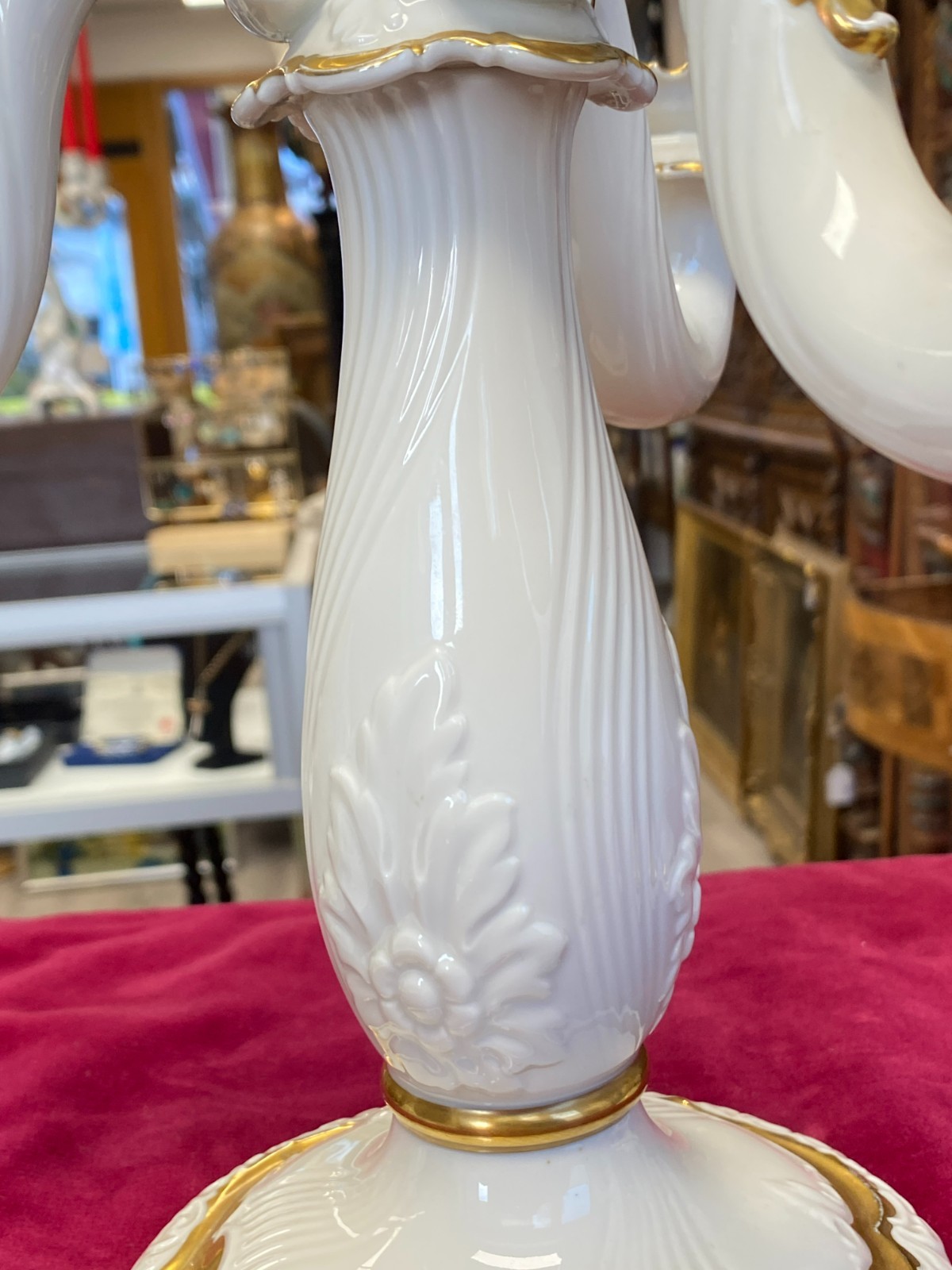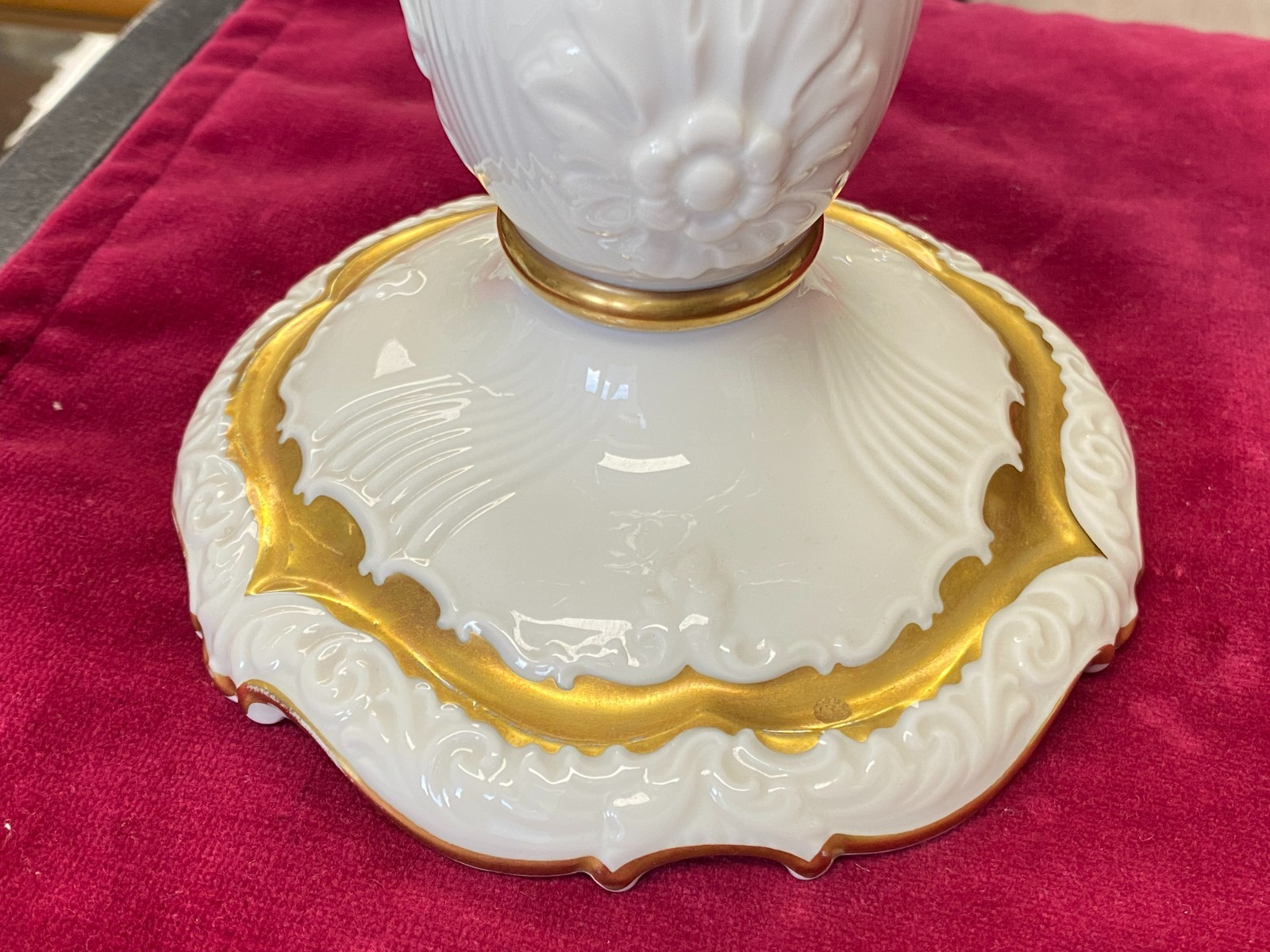 Paar dreiarmige Vintage Kerzenleuchter von der Manufaktur Rosenthal mit schöner Vergoldung. Die Vergoldung ist stellenweise berieben, wir konnten keine Chips oder Risse erkennen. Minimale Brandfehler. Den genauen Zustand entnehmen Sie bitte den Produktbildern. Gesamthöhe ca. 29cm, Durchmesser der Bodenplatte ca. 14cm, Länge der Arme ca. 14,5cm. Lieferung ohne Kerzen. Gerne würden wir hier aus Sicherheitsgründen auf den Postversand verzichten und bieten die Möglichkeit einer Abholung oder der Lieferung per Spediteur an.