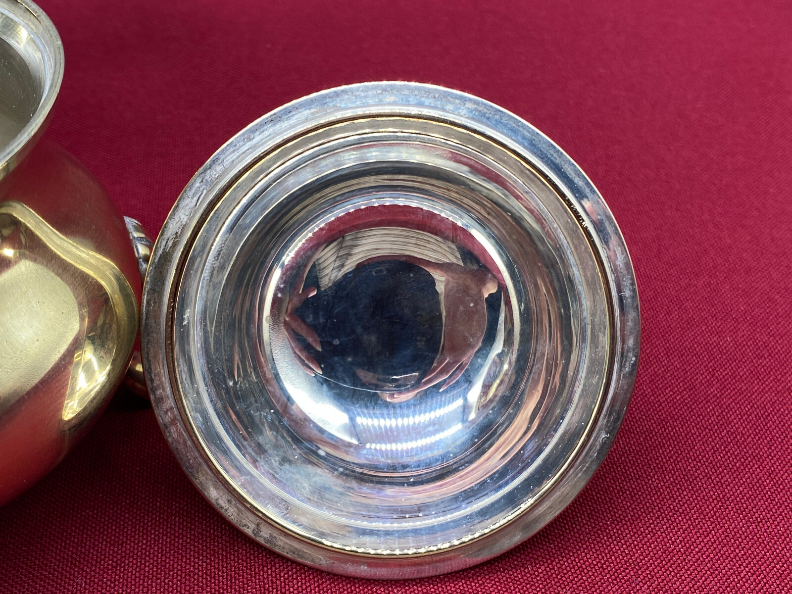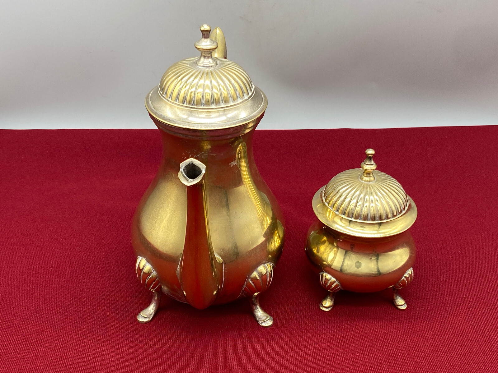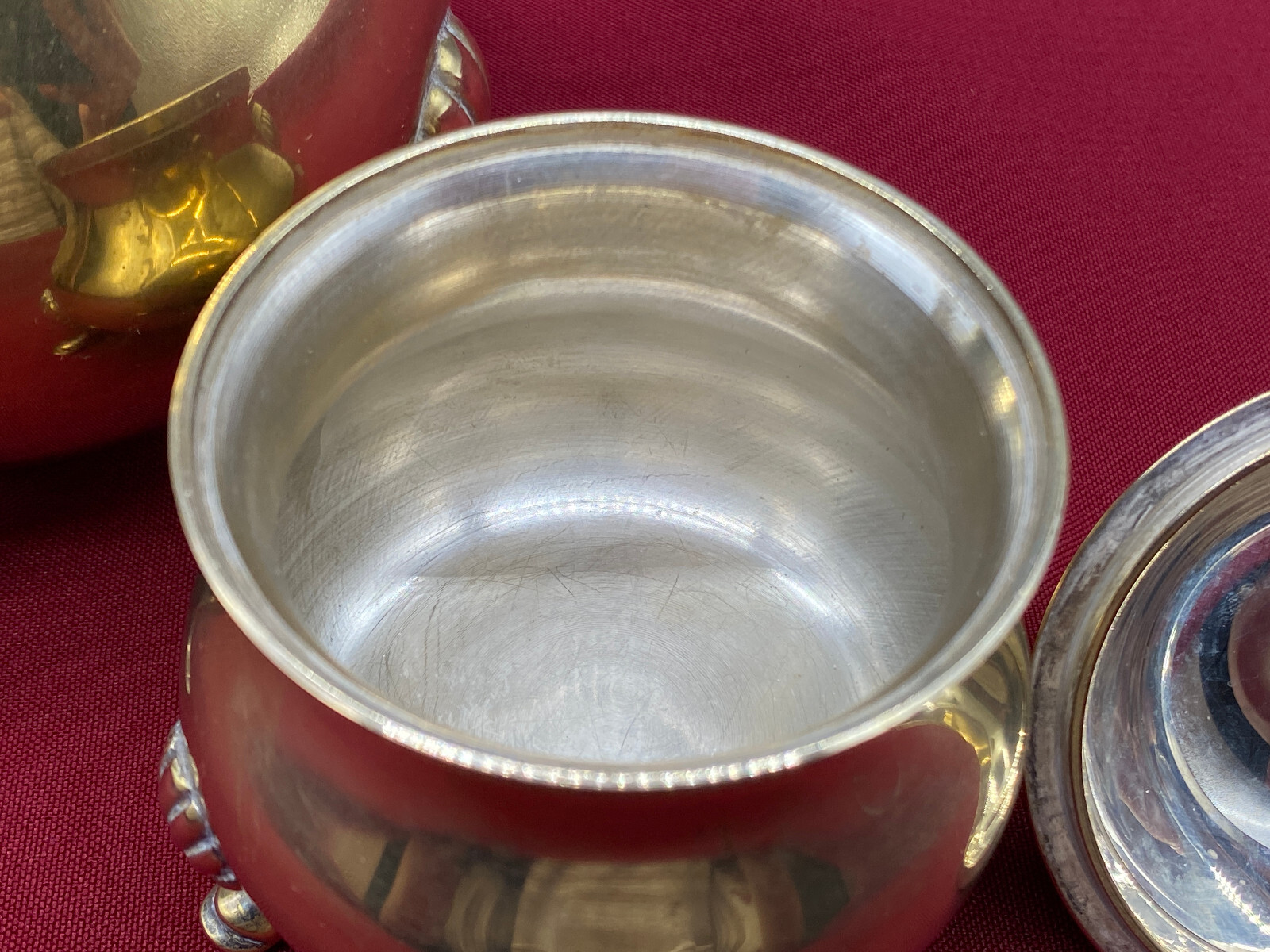 SERVIERSET TABLETT KANNE ZUCKERDOSE METALL VERSILBERT UND VERGOLDET