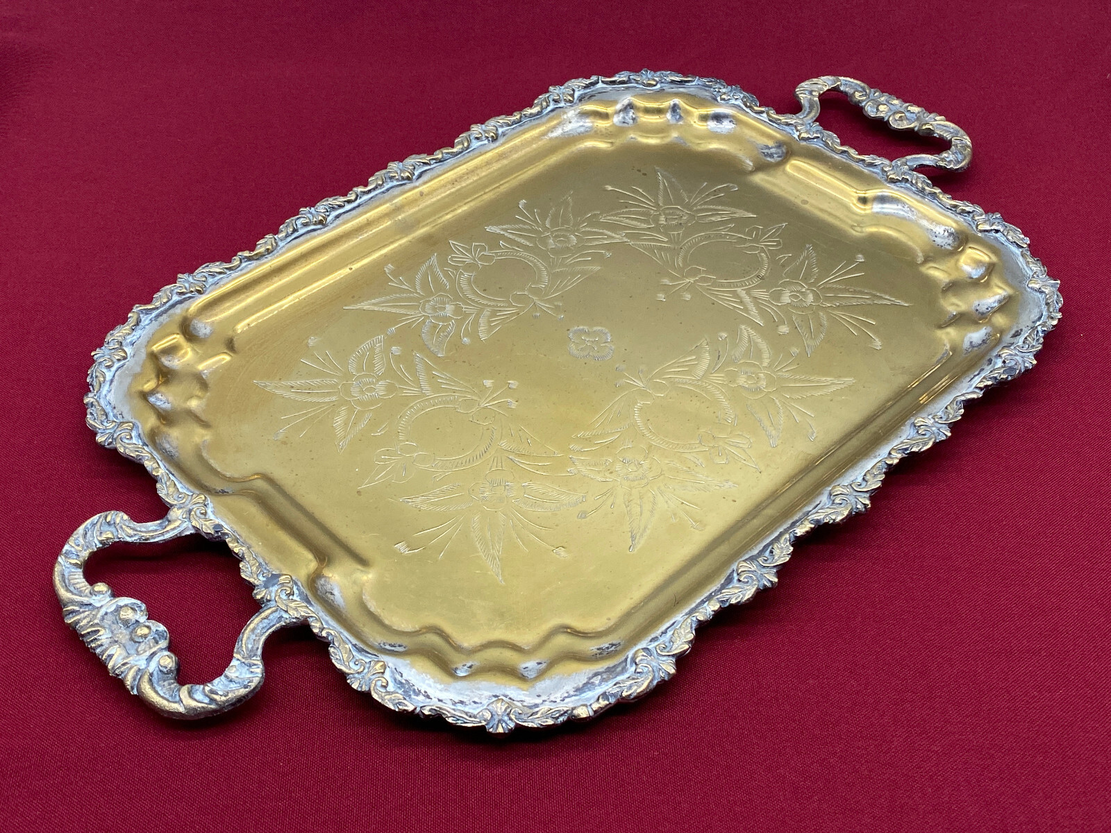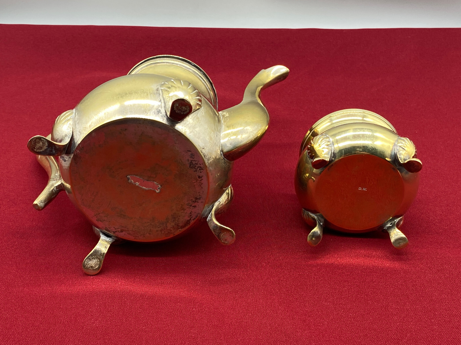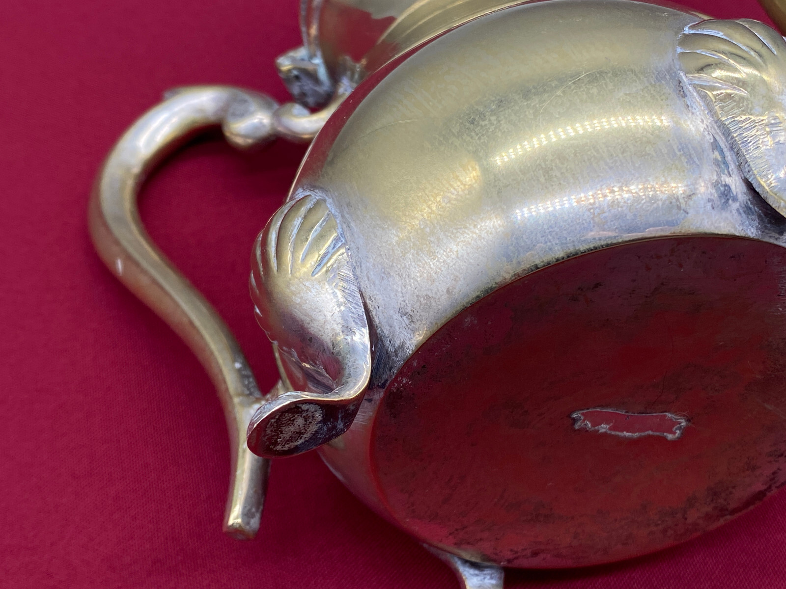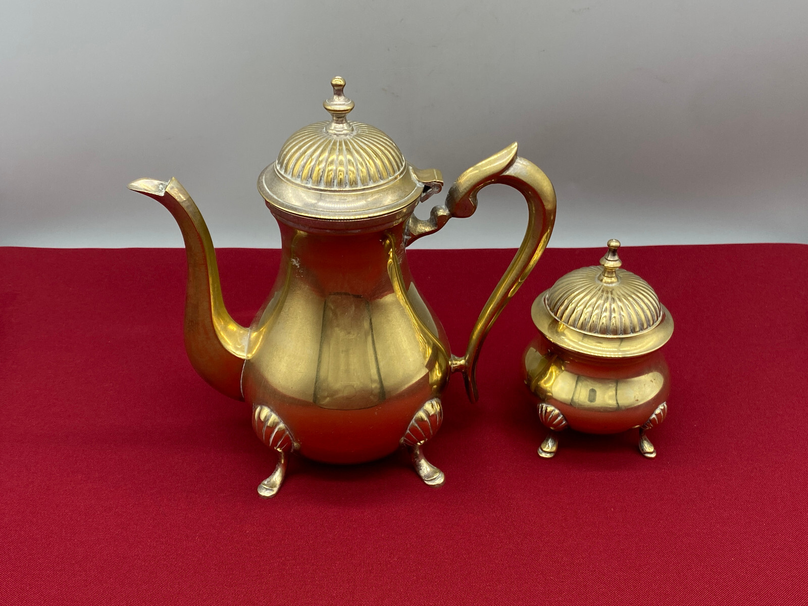 SERVIERSET TABLETT KANNE ZUCKERDOSE METALL VERSILBERT UND VERGOLDET