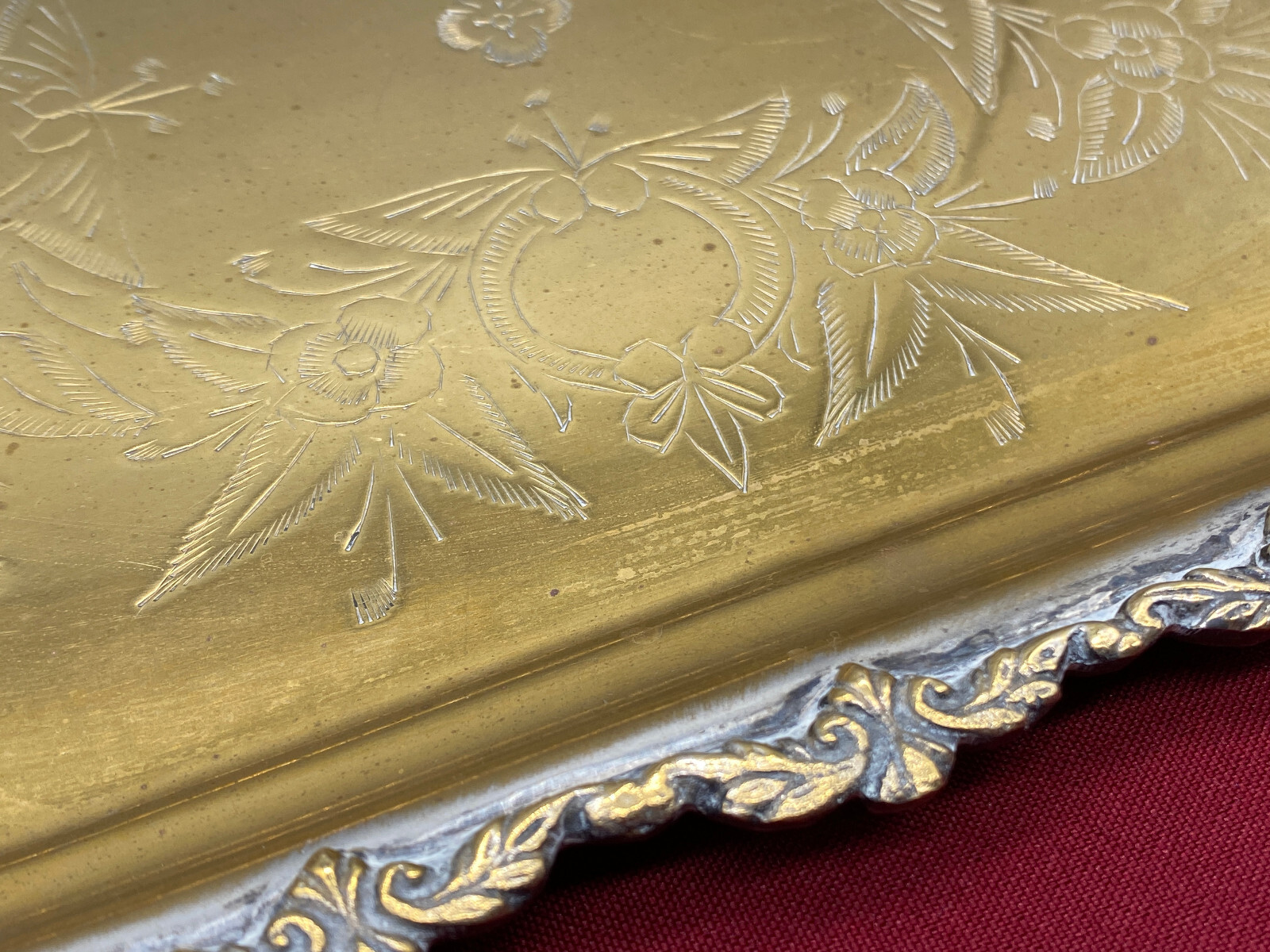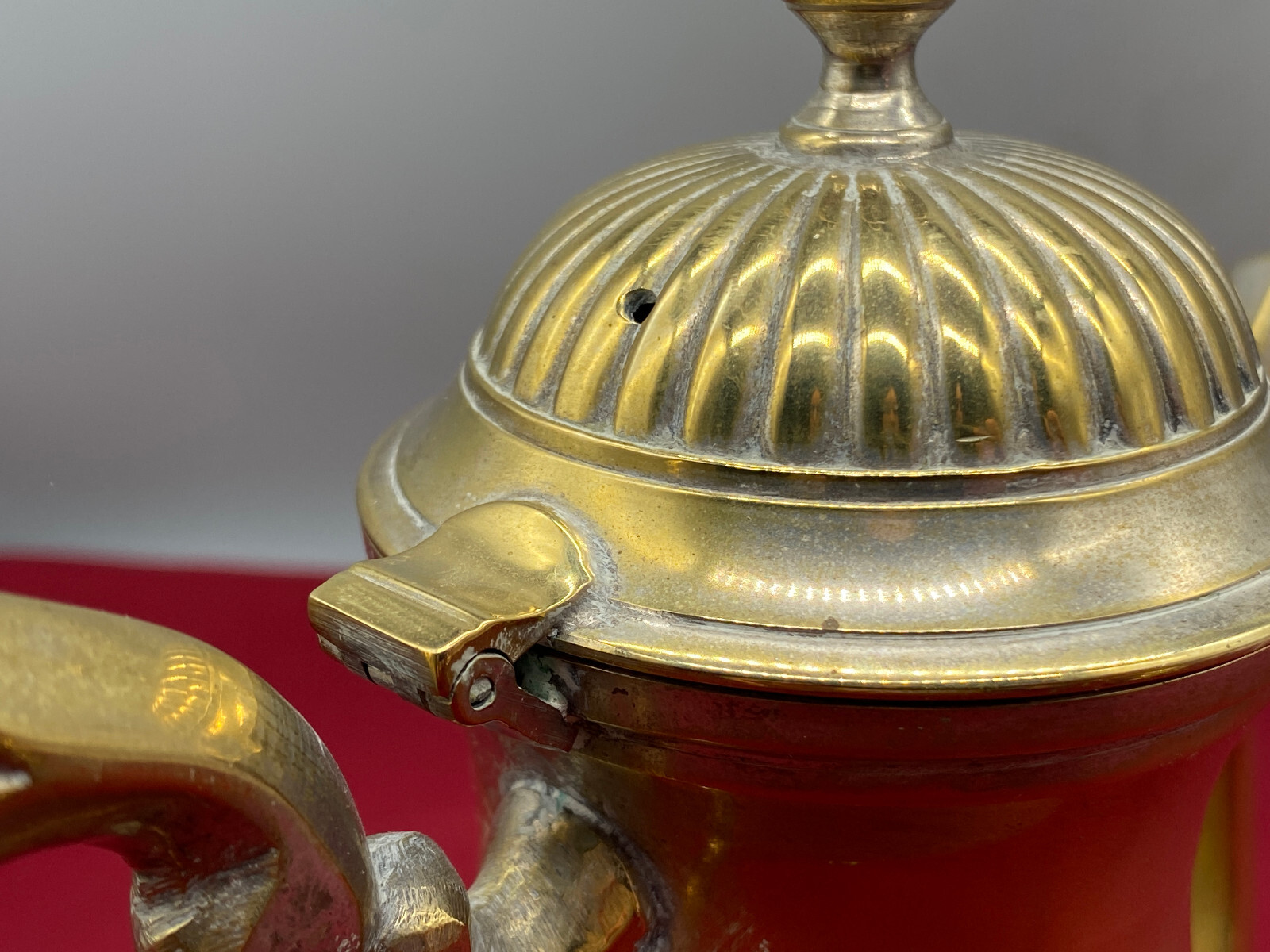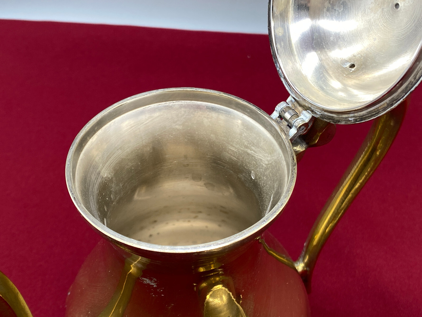 Sehr schönes Servierset, am Boden Punze DW. Messing massiv mit versilbert und zum Teil vergoldeter Oberfläche. Die Kanne am Boden gelötet, der Lot geht jedoch nicht durch , die Beschichtung zum Teil berieben. Tablett Masse 41x25cm, Kanne Höhe/Durchmesser 20/11cm, Zuckerdose Höhe/Durchmesser 11/8cm. Beachten Sie bitte die Bilder, diese sind Bestandteil der Auktionsbeschreibung. Sonstige Gegenstände auf den Fotos sind nicht Bestandteil des Angebotes. Sie können uns ganz einfach zu Ihren favorisierten Verkäufern hinzufügen. So werden Sie immer über neue Artikel und Angebote informiert.
