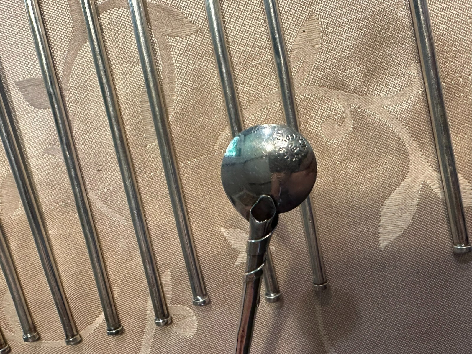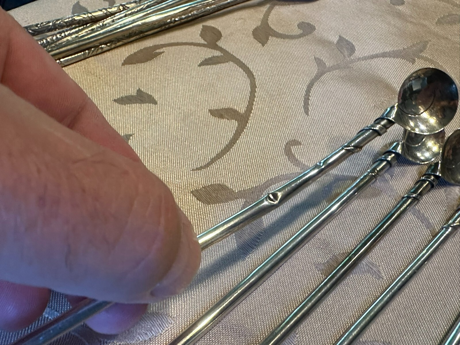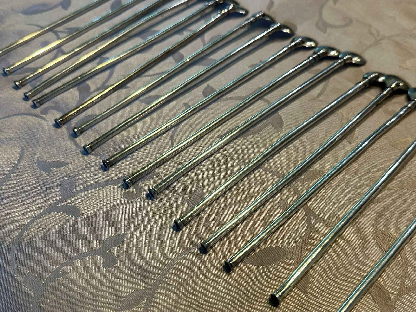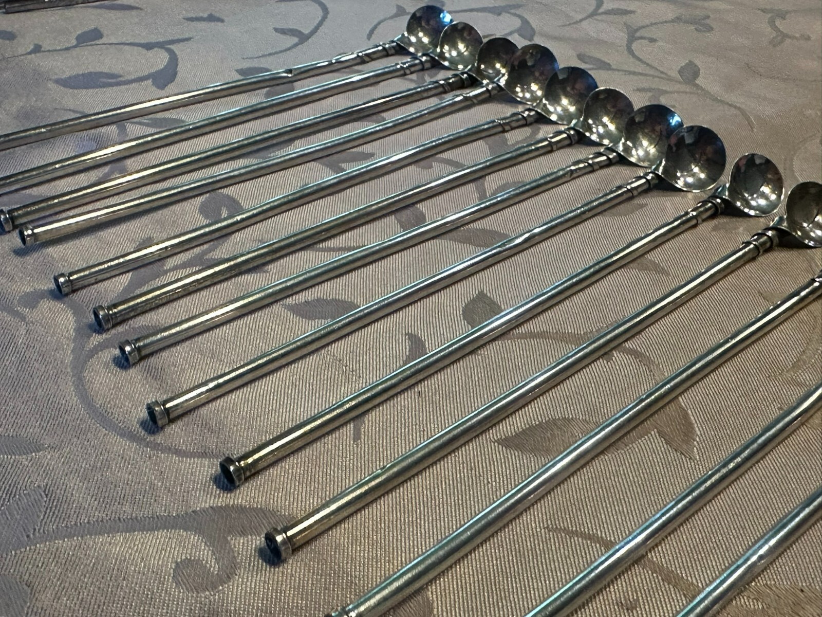 Set bestehend aus 17 Latte Macchiato Löffeln aus Sterling Silber 925, punziert. Einige der Löfffel haben Knicke im Schaft, möglicherwesie hier undicht. Gesamtlänge 18,5cm, Gesamtgewicht 57g.