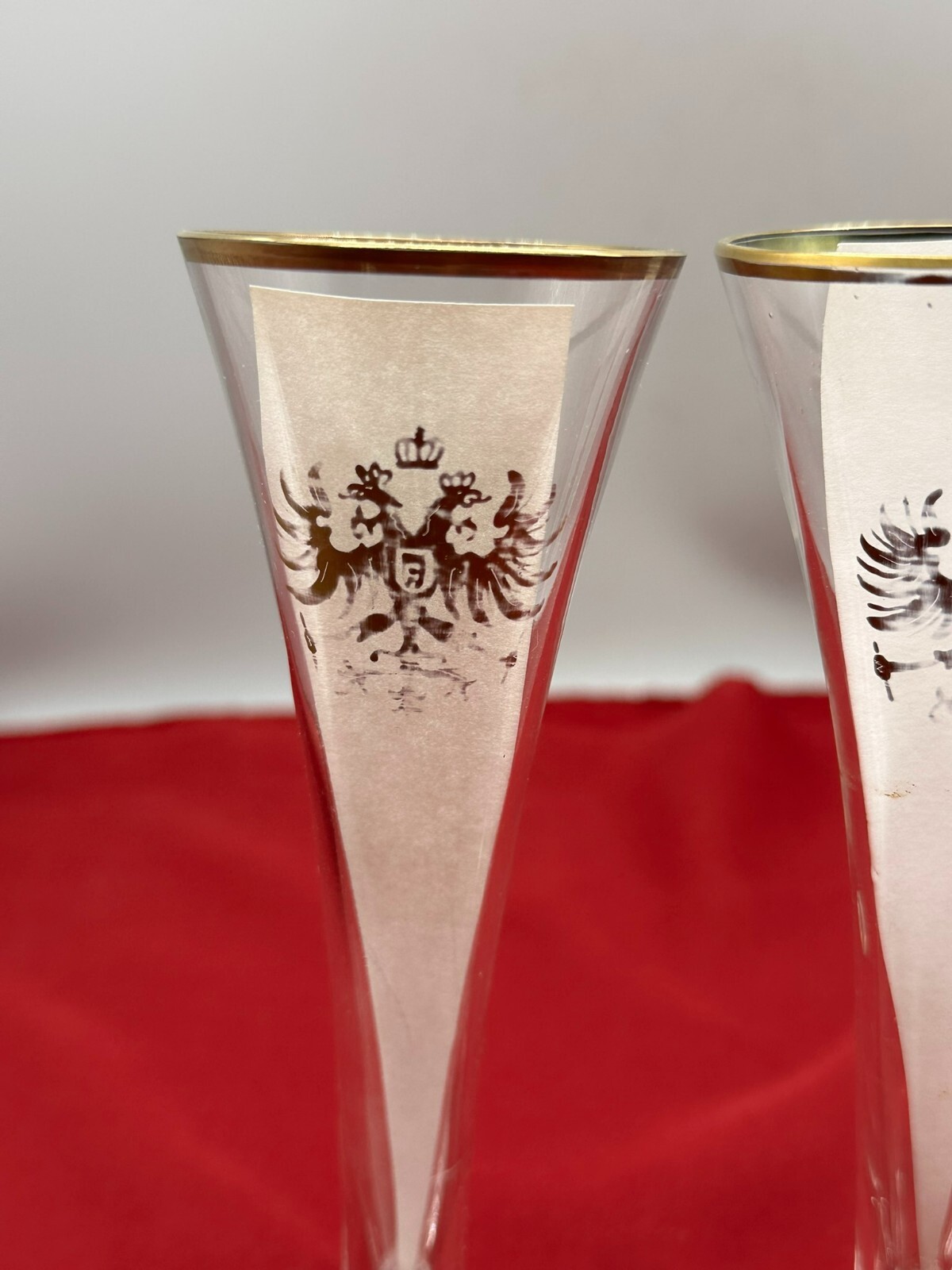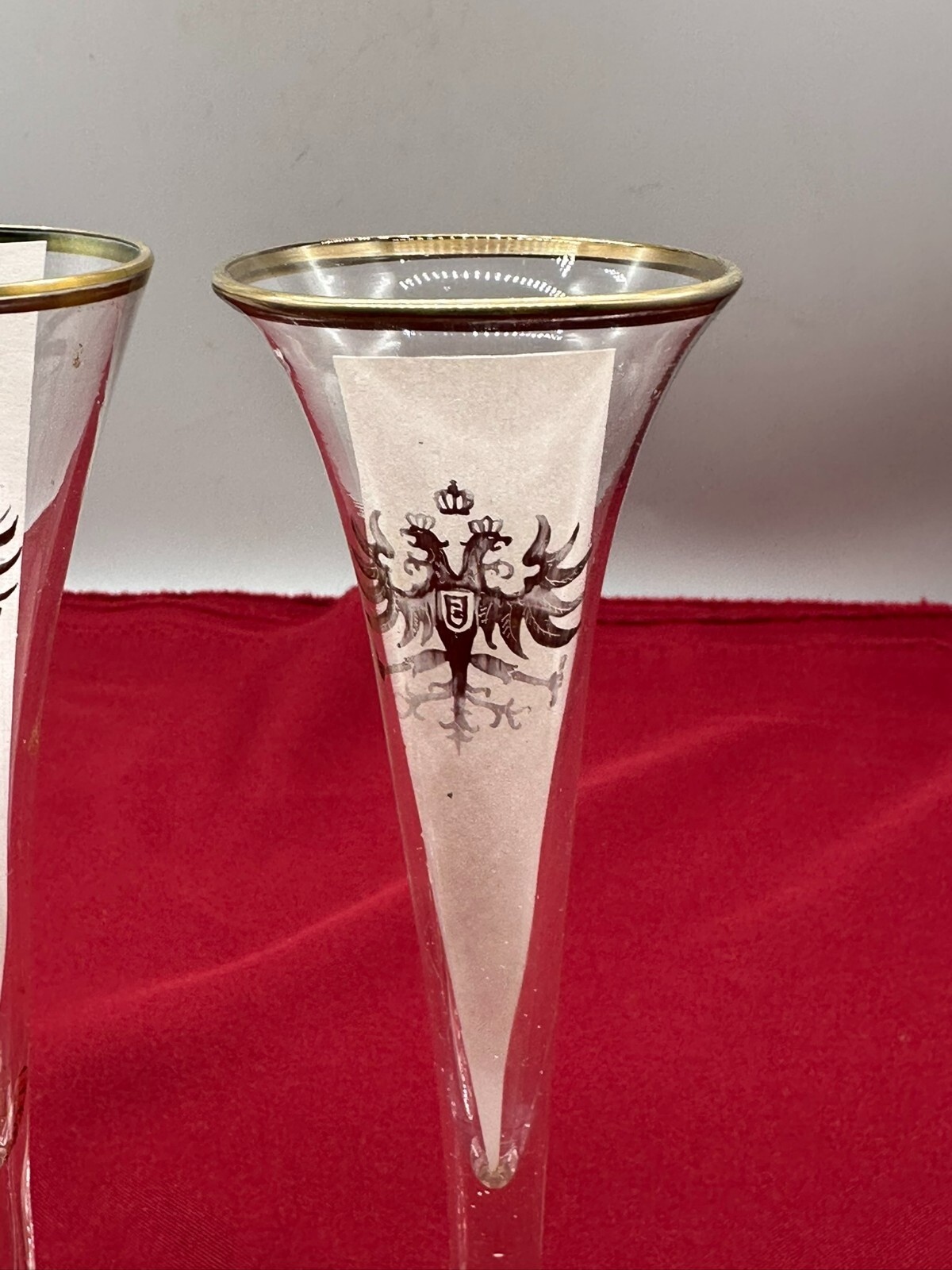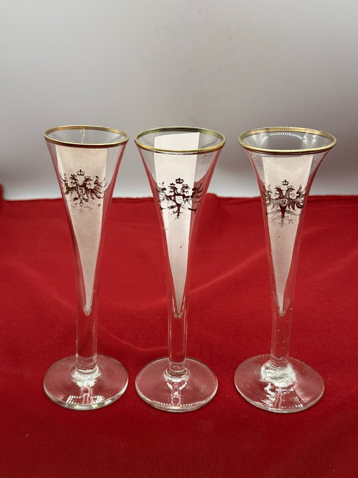 SET 3 ANTIKE SEKTSPITZEN UM 1880 SEKTGLÄSER KAISERWAPPEN DOPPELADLER