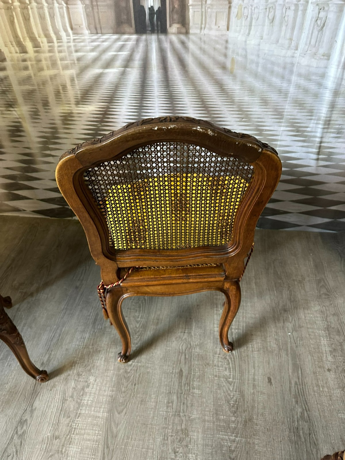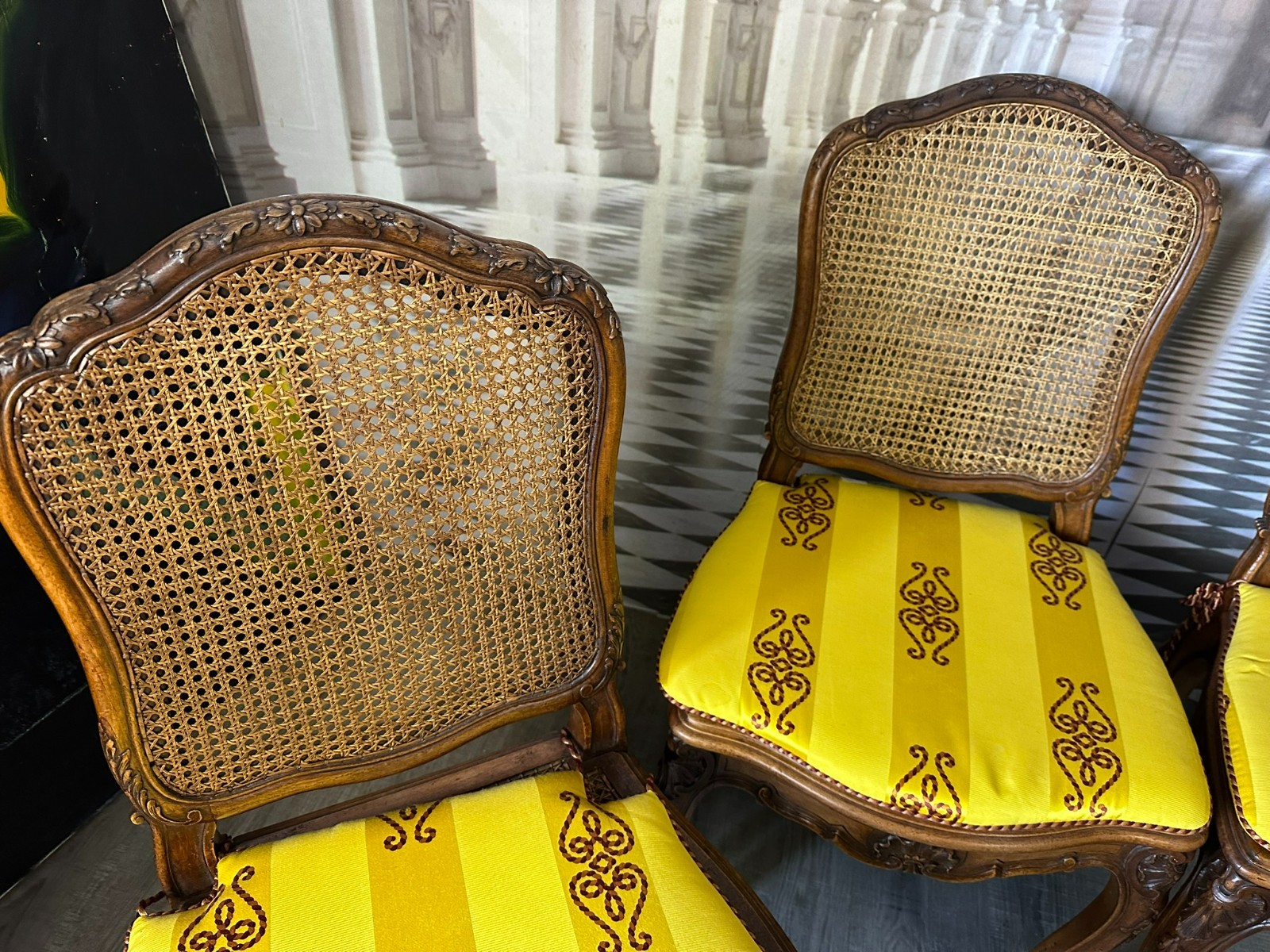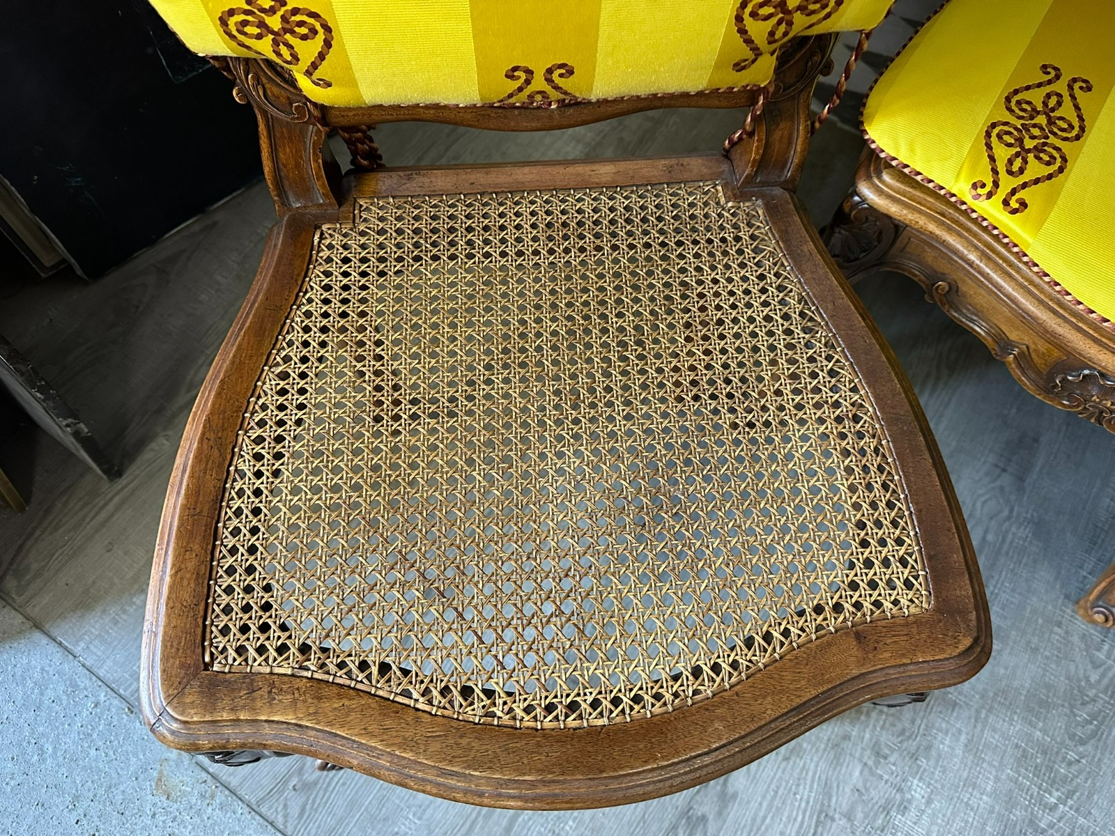 SET 4x ANTIKER BAROCK STUHL UM 1880 NUSSBAUM RATTAN GEFLECHT