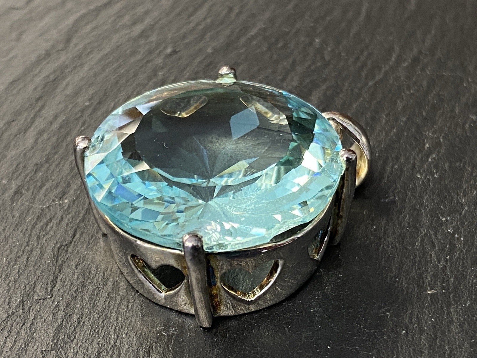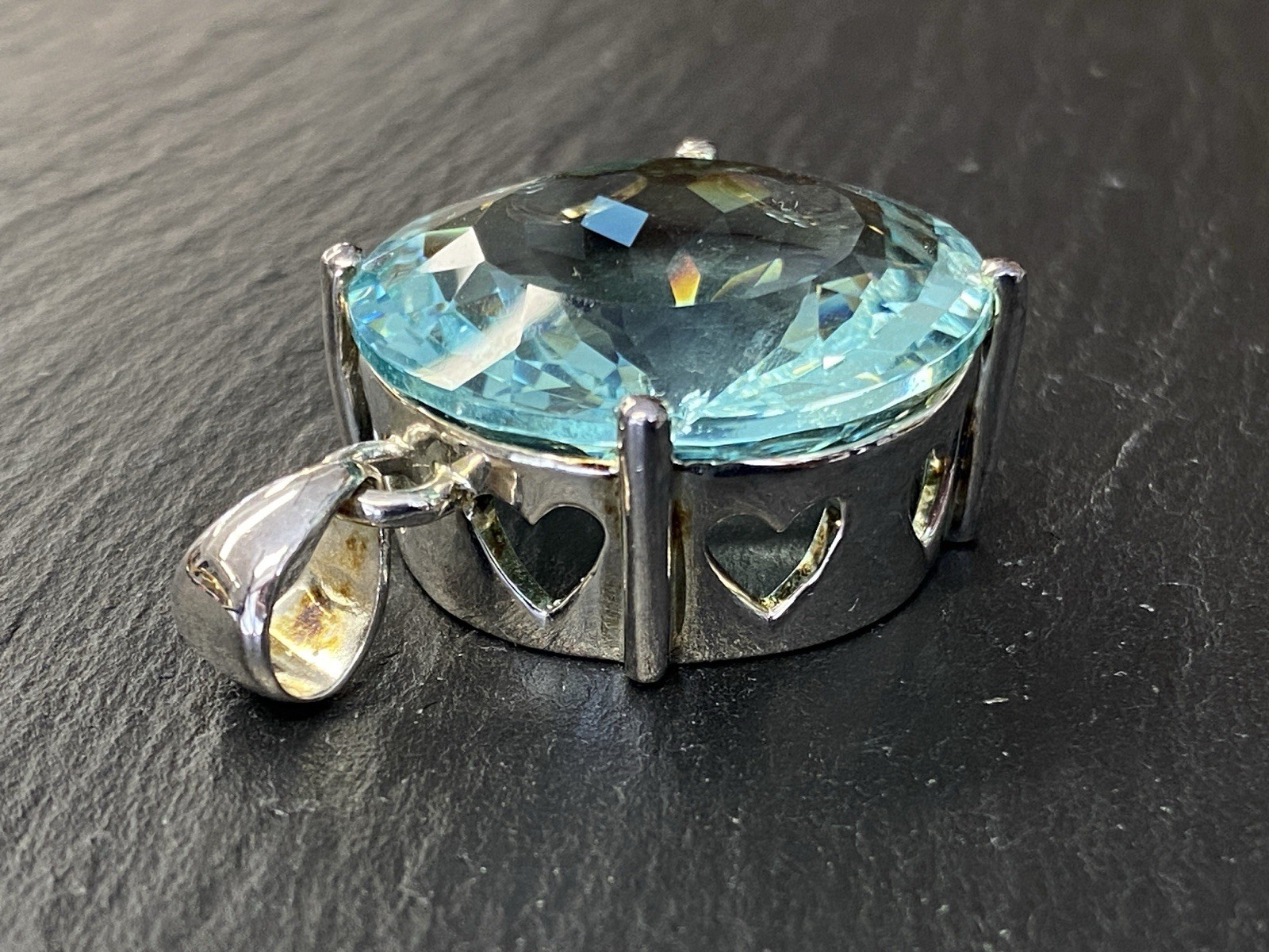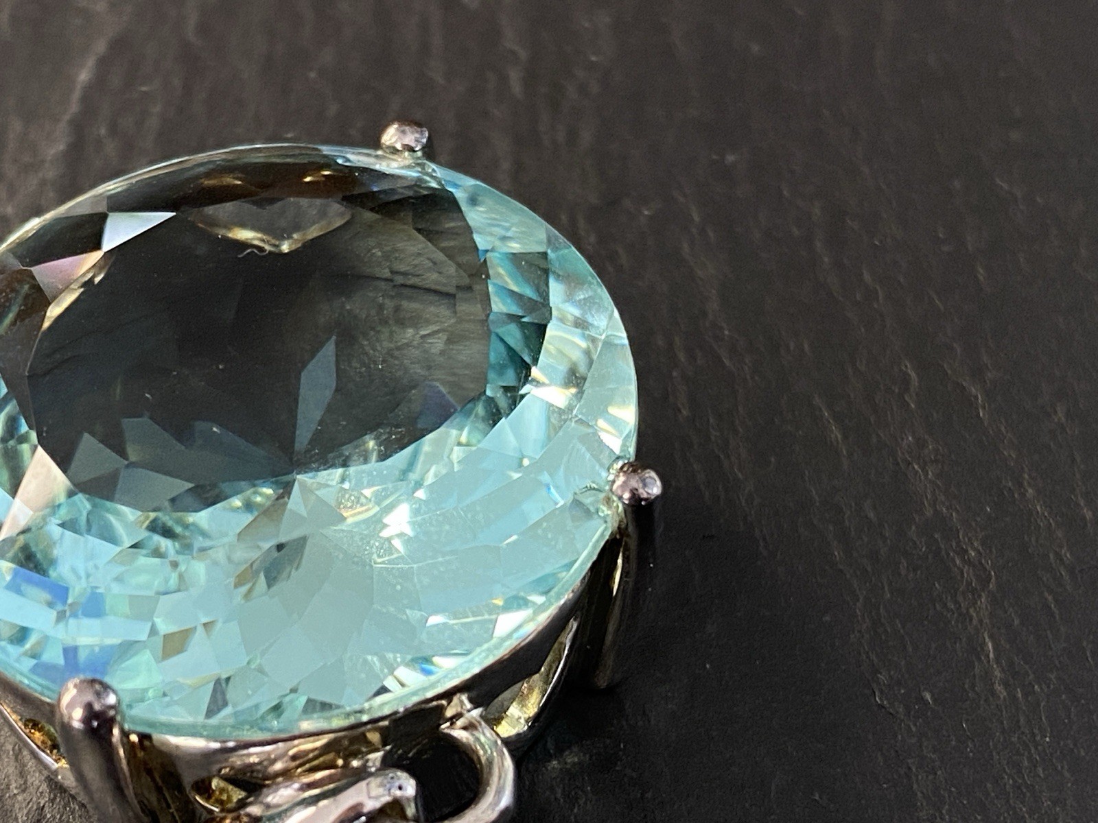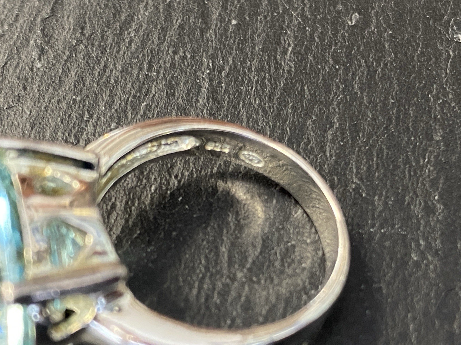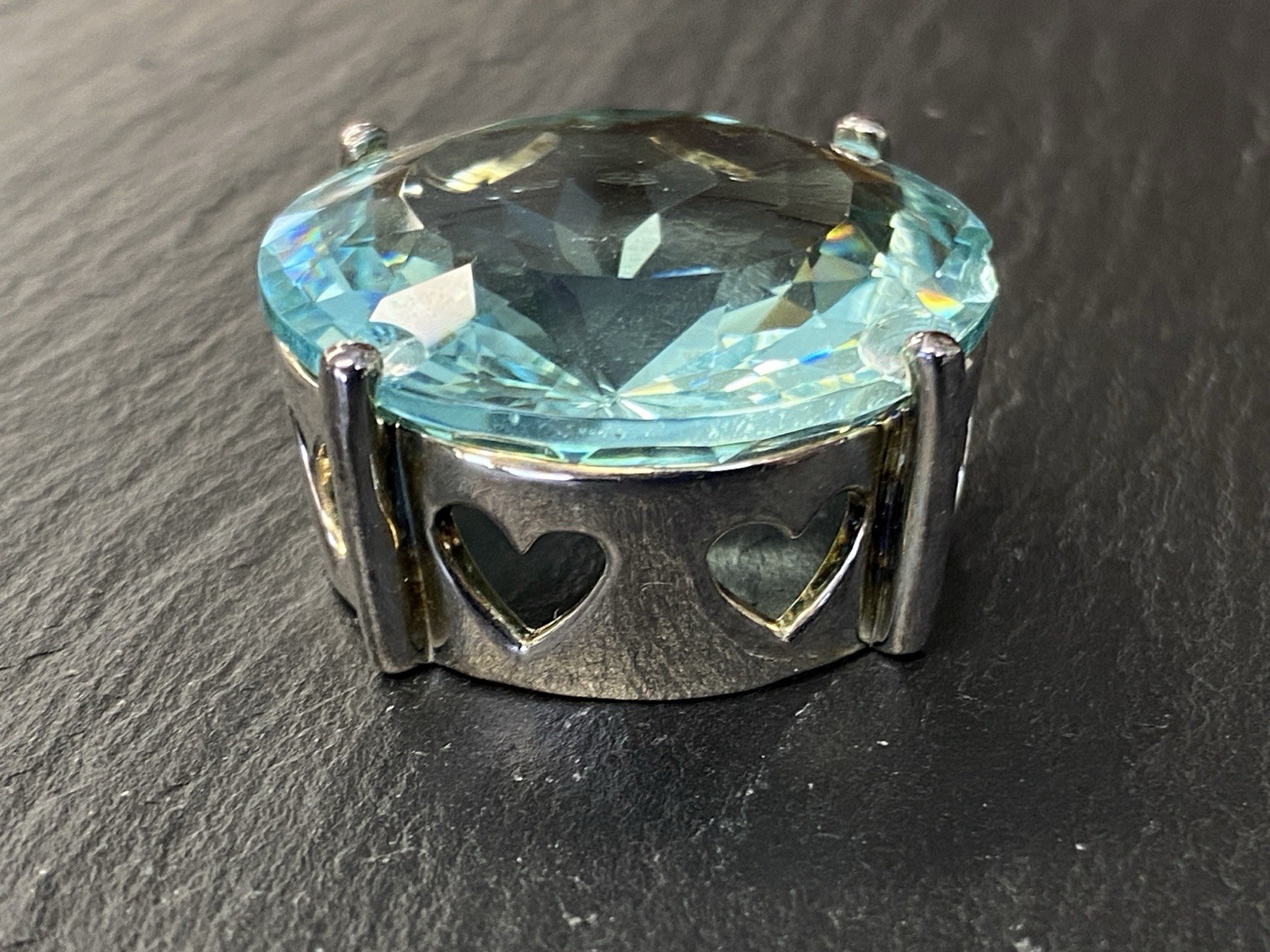 Modeschmuck Set bestehend aus einem Armband, einem Ring und einem Kettenanhänger mit Glassteinen in Aquamarinfarben, alle Teile sind mit 925 gestempelt. Die Glassteine sind bei allen 3 Teilen an den Kanten und besonders im Bereich der Grappen gebrochen, am Kettenanhänger ist es sichtbar, beim Ring und dem Armband erst bei genauerem hinschauen. BTH Anhänger 3/1,6/3,4cm, Gesamtgewicht ca. 26,00g. BTH des Mittelstücks am Ring 1,5/0,9/1,5cm, B/H der Ringschiene 0,4/0,1cm, Ringgröße 56, Gesamtgewicht ca. 6,96g. BTH des Mittelstücks am Armband 2/1,1/2cm, Durchmesser ca. 5cm, Länge der Verlängerungskette ca. 9,5cm, Gesamtgewicht ca. 20,00g.
