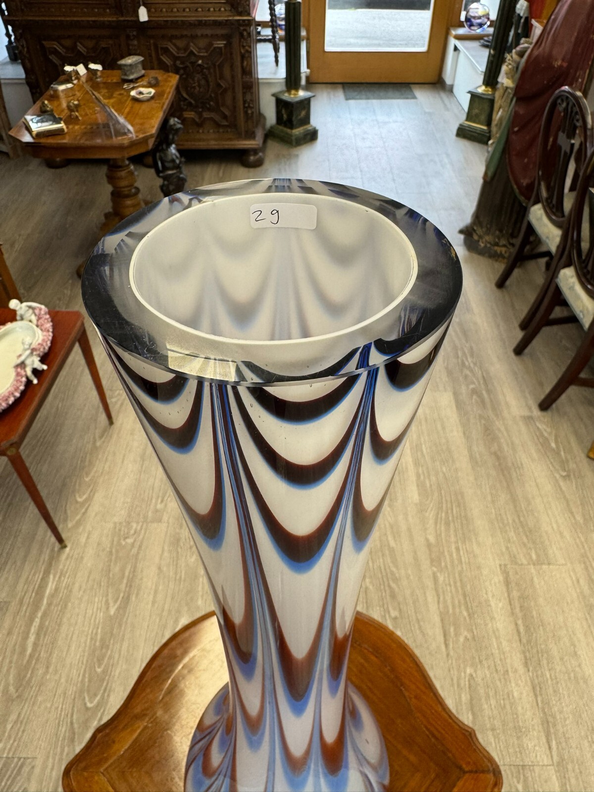 Sehr schöne, Vintage Lollipop Space Age Bodenvase aus Glas, Schott-Zwiesel, nicht signiert, 1970-80-er Jahre. Mundgeblasen, ohne Chips. Im Glas kleinere Bläschen, innen sauber. Abmessungen Höhe/ Durchmesser: 81x24cm