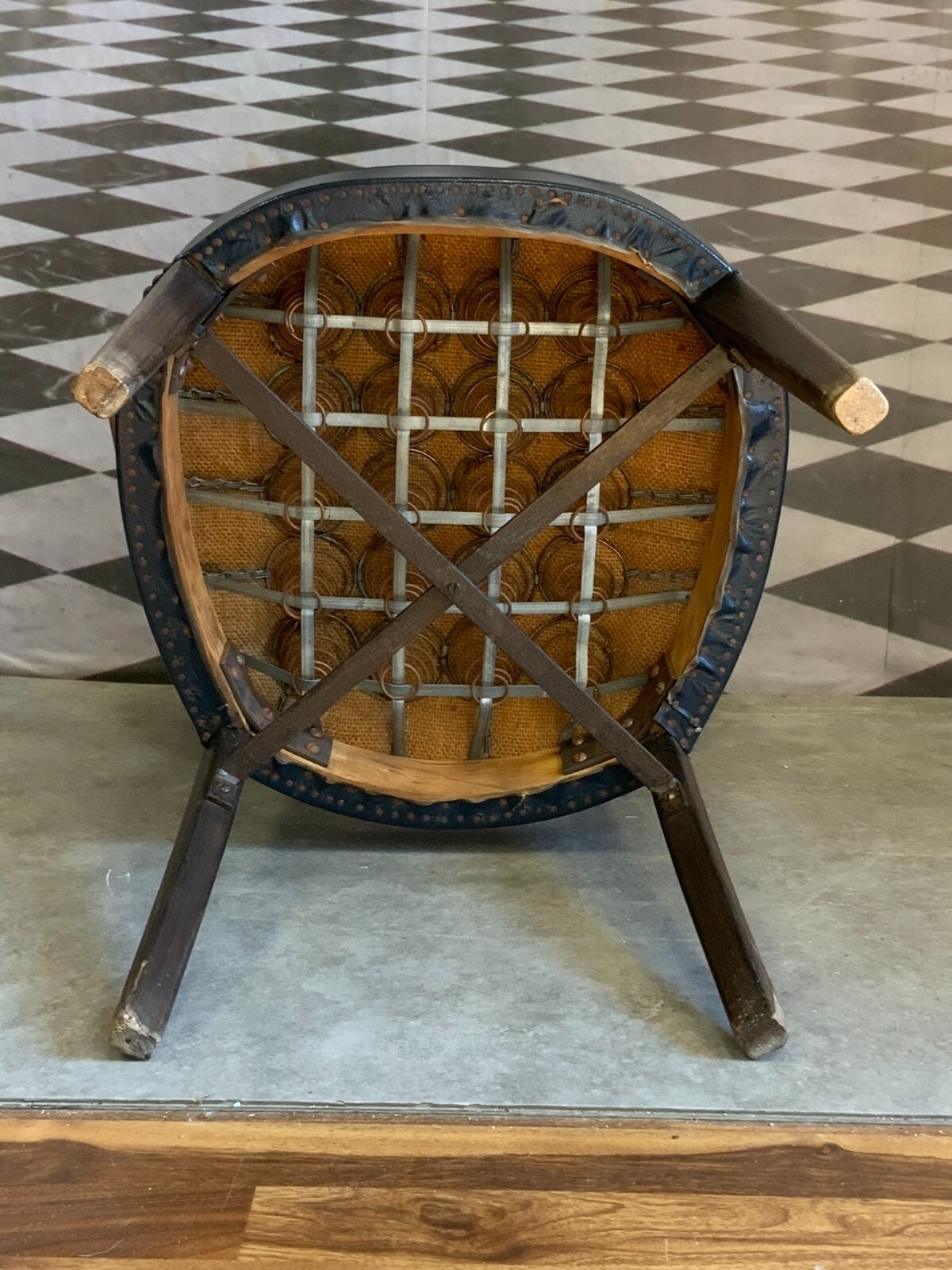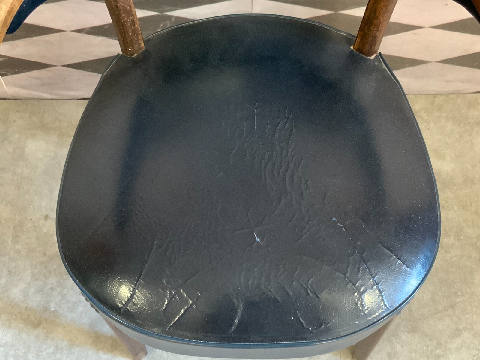 VINTAGE DESIGNER ARMLEHNSTUHL STUHL SESSEL HOLZ GESTELL LEDER BEZUG