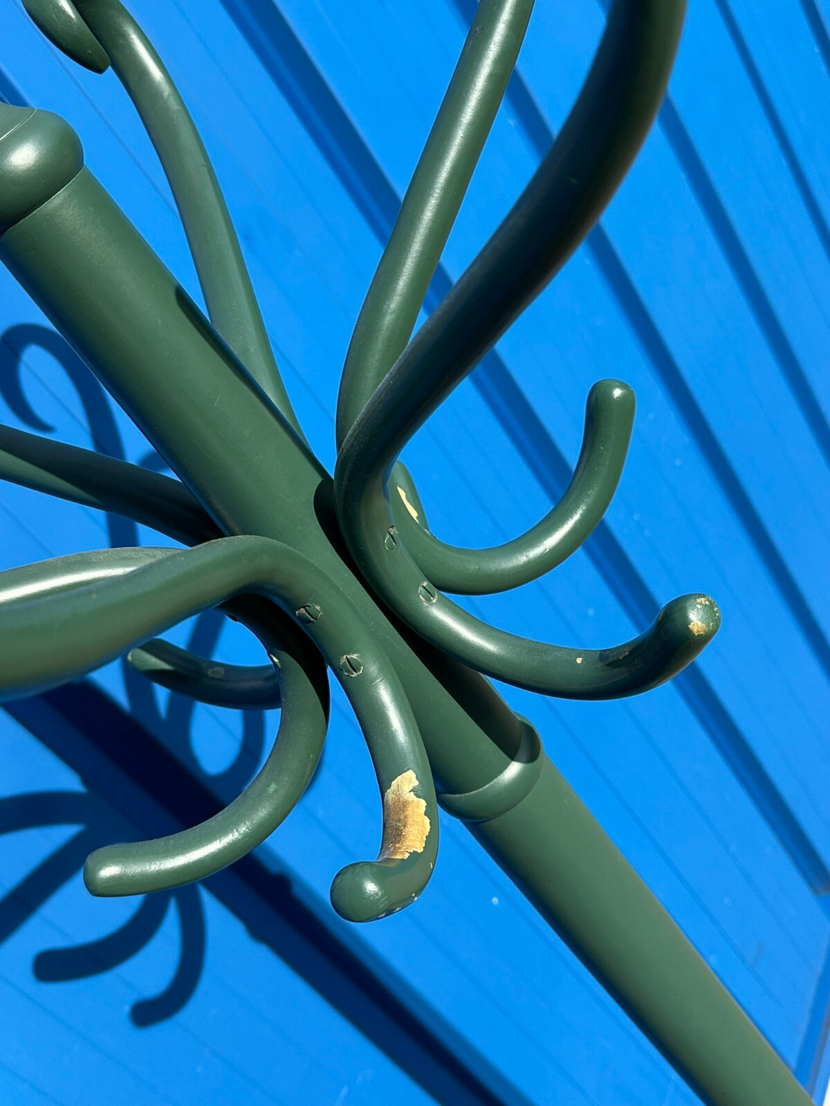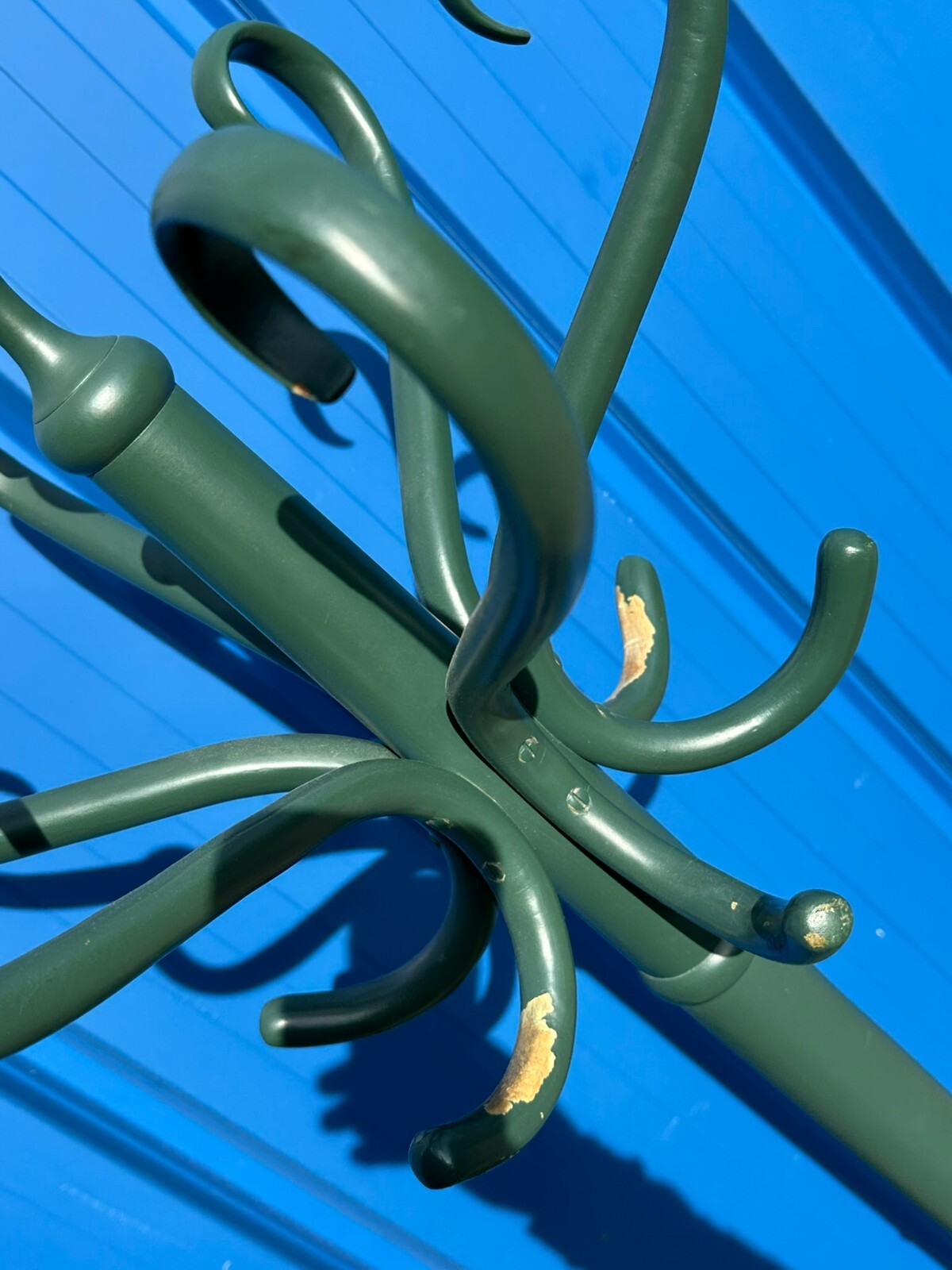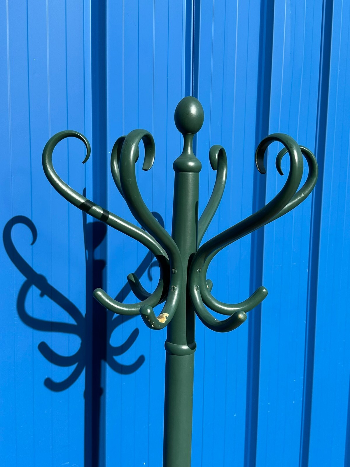 Vintage Kleiderständer in Thonet Stil. MItte 20-tes Jhdt. Holz massiv, komplett übermalt, die Farbe an diversen Stellen abgeblättert. Schöner stabiler Zustand. Höhe / Durchmesser oben 182/44cm.