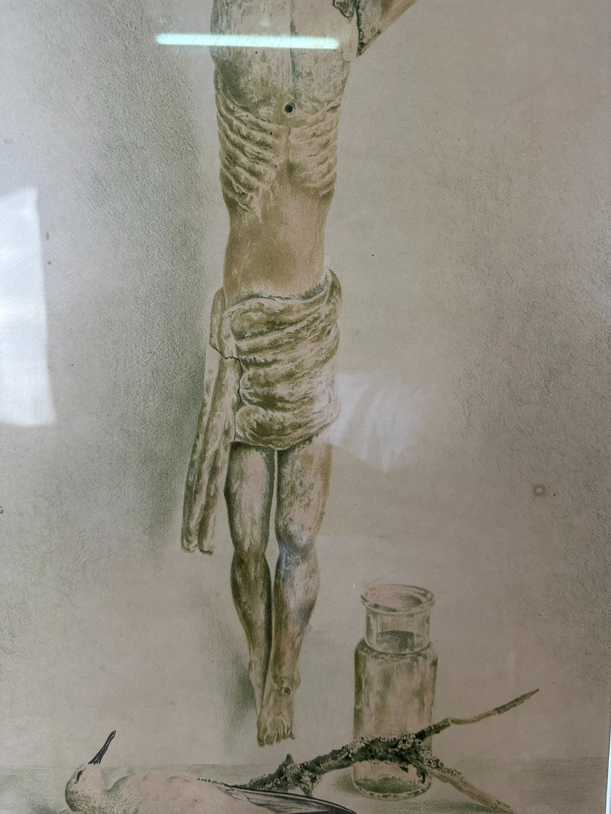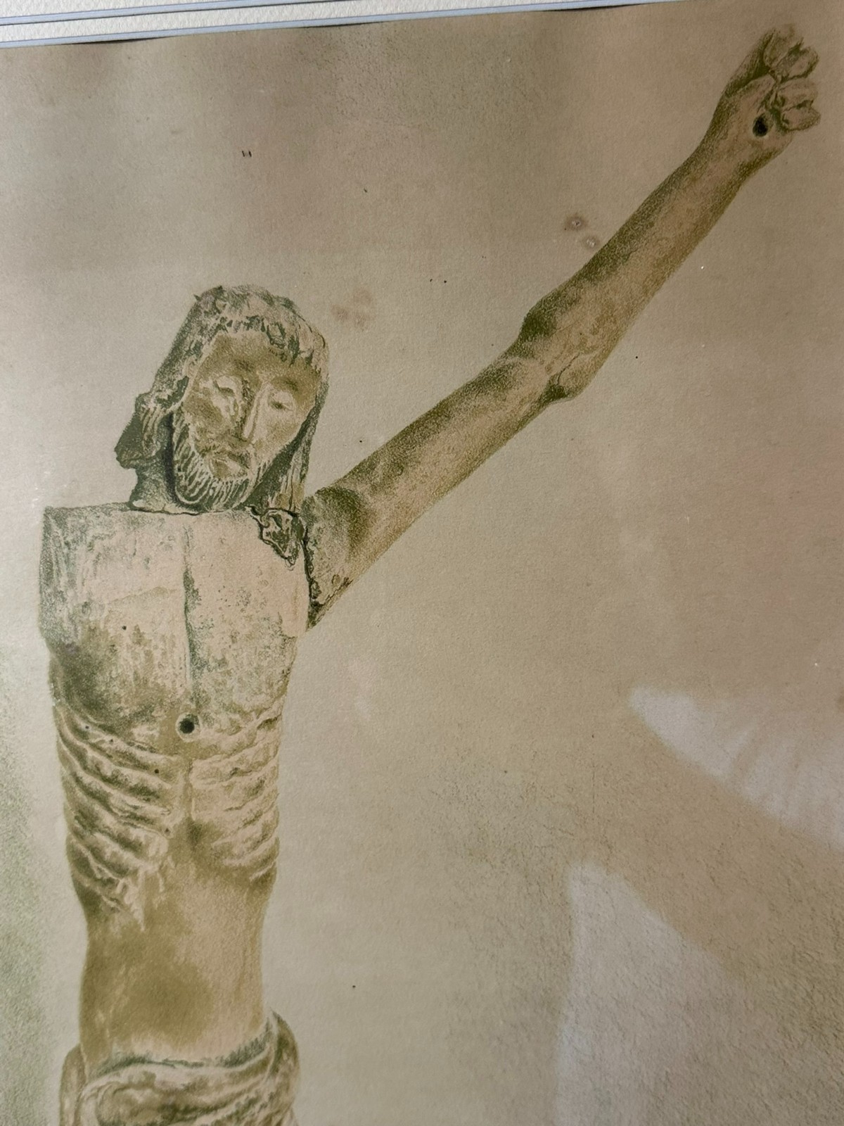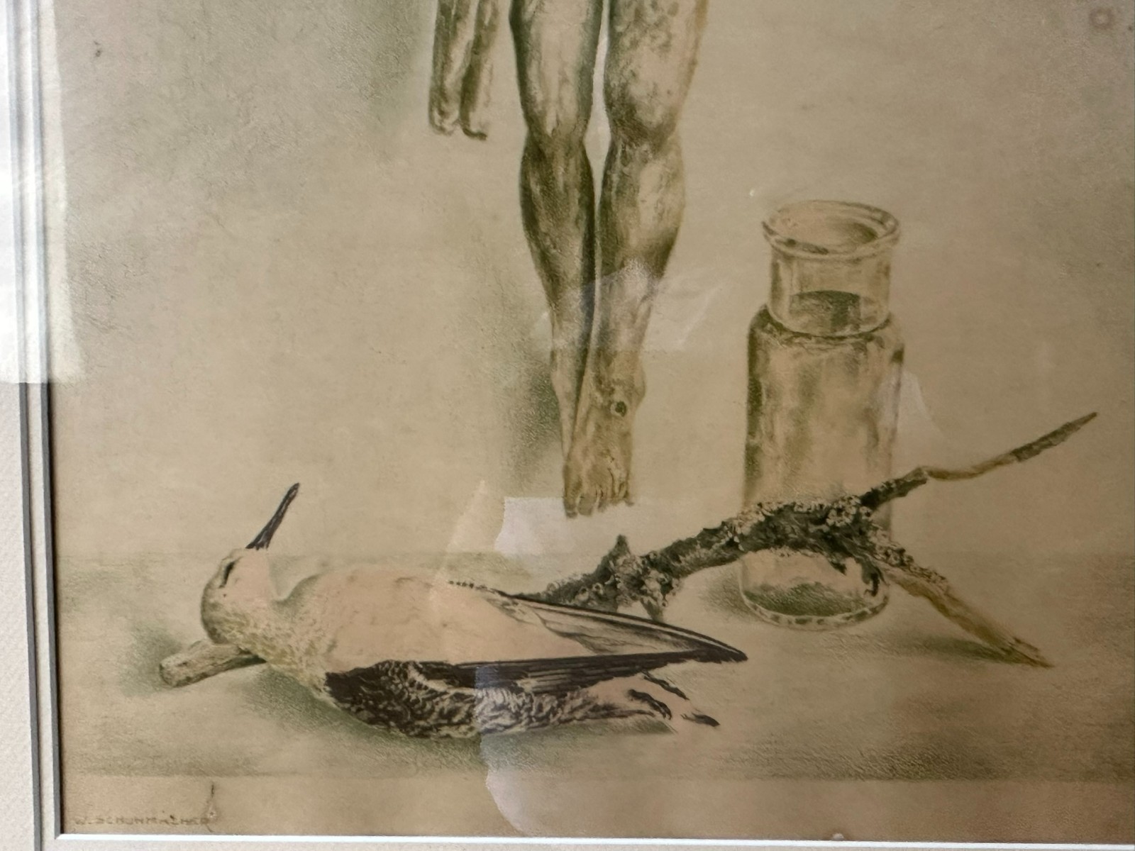 Große Litografie auf Papier, unten links signiert, gerahmt hinter Glas. Der Rahmen an den Ecken leicht bestossen, das Blatt ist zum Teil vergilbt und fleckig. Gesamtabmessungen 54x81cm.