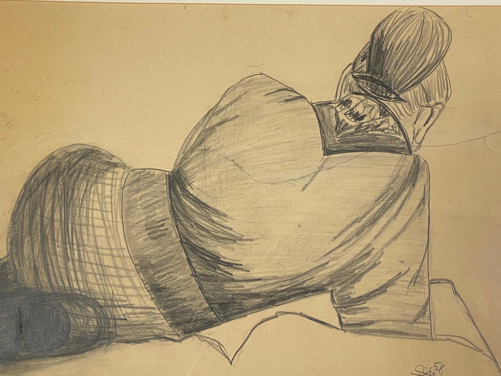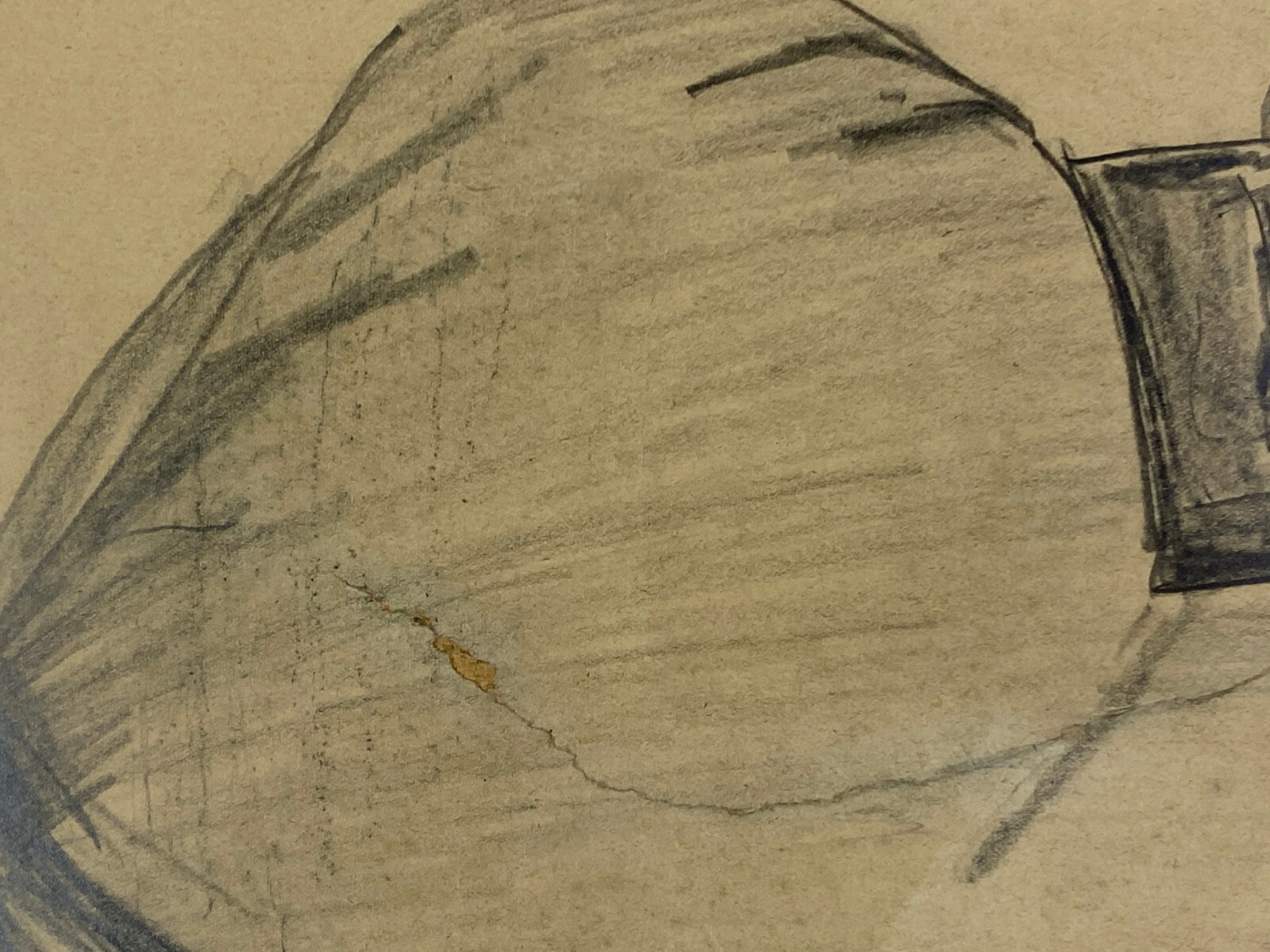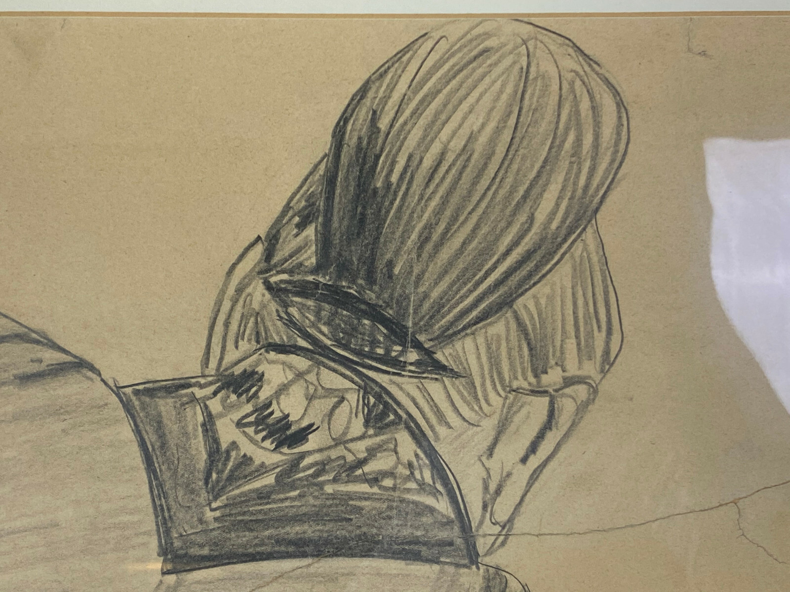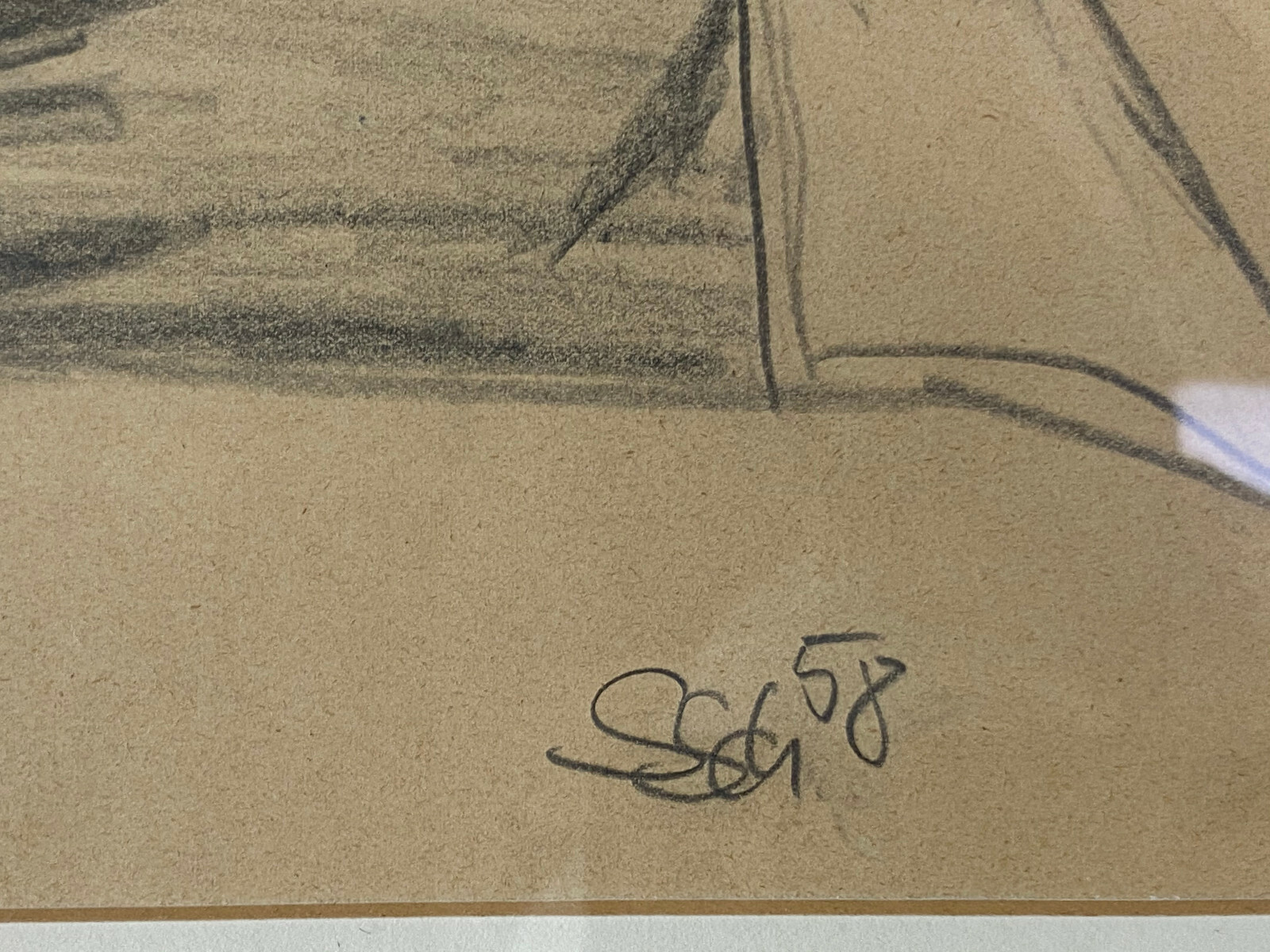 Zeichnung auf Papier, unten rechts signiert hochwertig gerahmt. Das Blatt ist vergilbt hat kleinere Stockflecken und mittig einen Riss. Der Rahmen befindet sich in sehr gutem Zustand. Abmessungen 56x46cm, mit Rahmen 60x51cm.