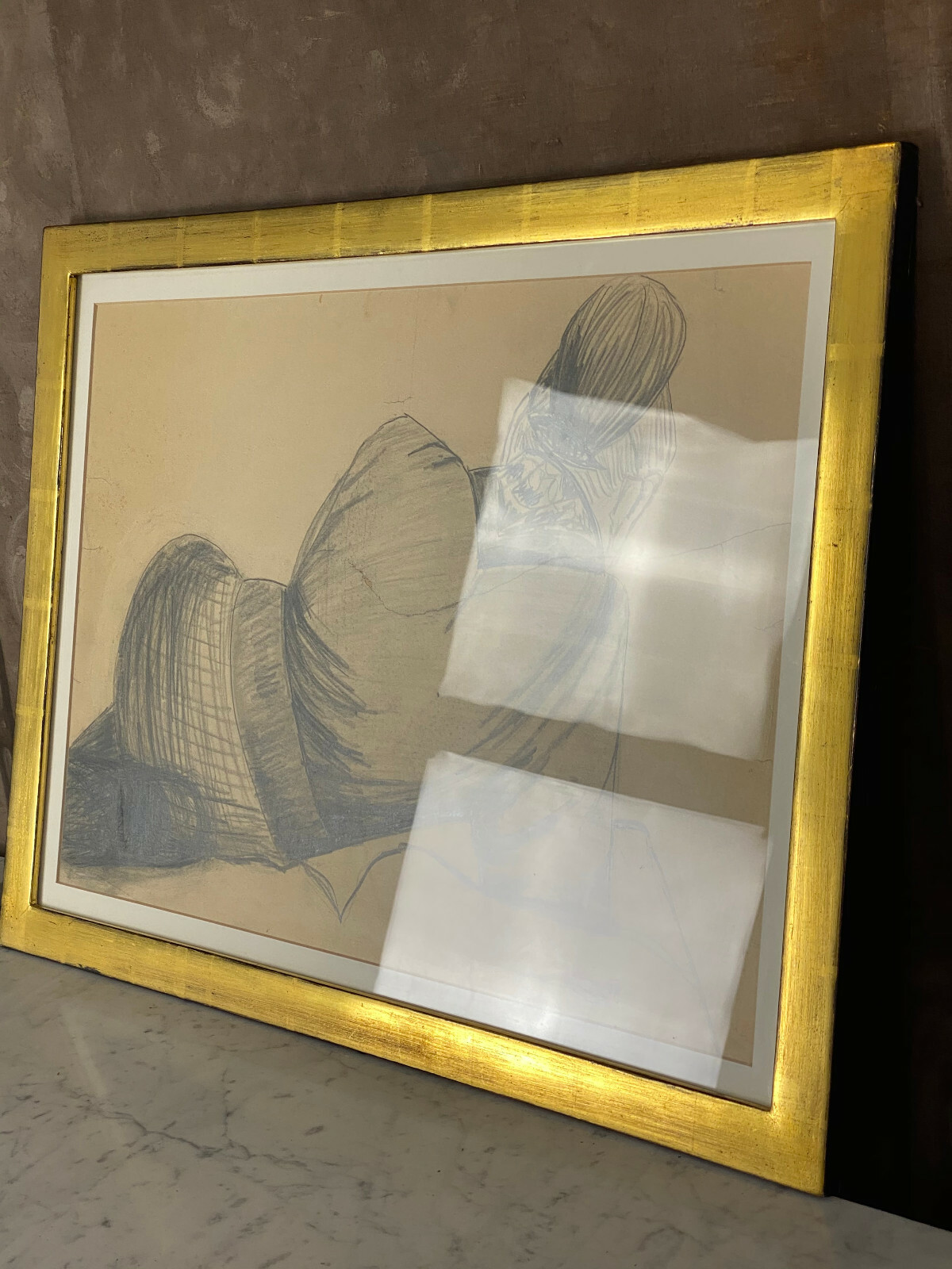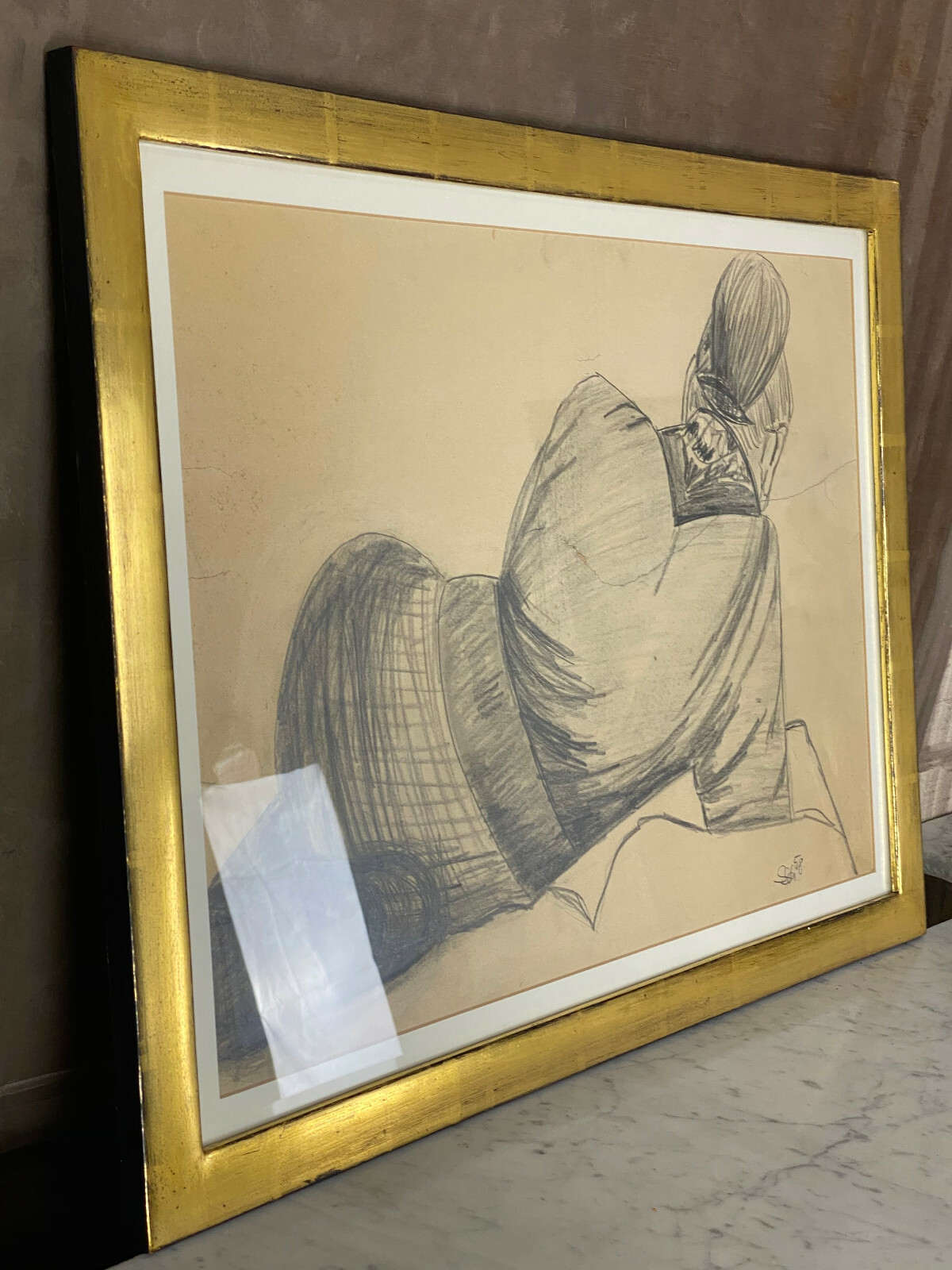 ZEICHNUNG AUF PAPIER HOCHWERTIG GERAHMT SIGNIERT ABMESSUNGEN 60x51cm